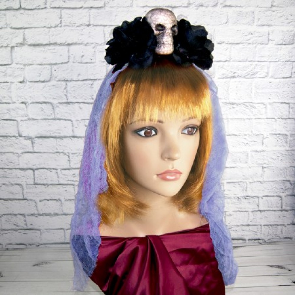 Аксесуар на обідку Череп з фатою (фіолетовий)