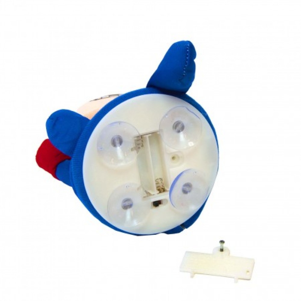 Іграшка реагує на удар звуковим сигналом. Працює від двох батарейок формату ААА. Іграшку можна закріпити на гладкій повіхості за допомогою 4 присосок. У комплектації може бути відсутня кришка відсіку для батарей.