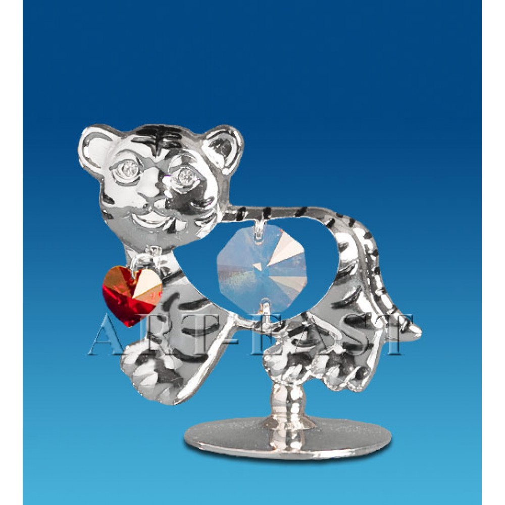Фигурка тигра – это изящная фигурка, сделанная из металла и покрыта позолотой. Тигров часто изображают в позе атаки с открытой пастью и острыми клыками. В этом варианте тигр украшен камнем Swarovski (камни Svarovski - это искусственный хрусталь с добавкой прочих элементов, и обработаны по особенной технологии производства компанией Сваровски AG). Фигурка тигра может служить элементом декора или символом мужества и силы.