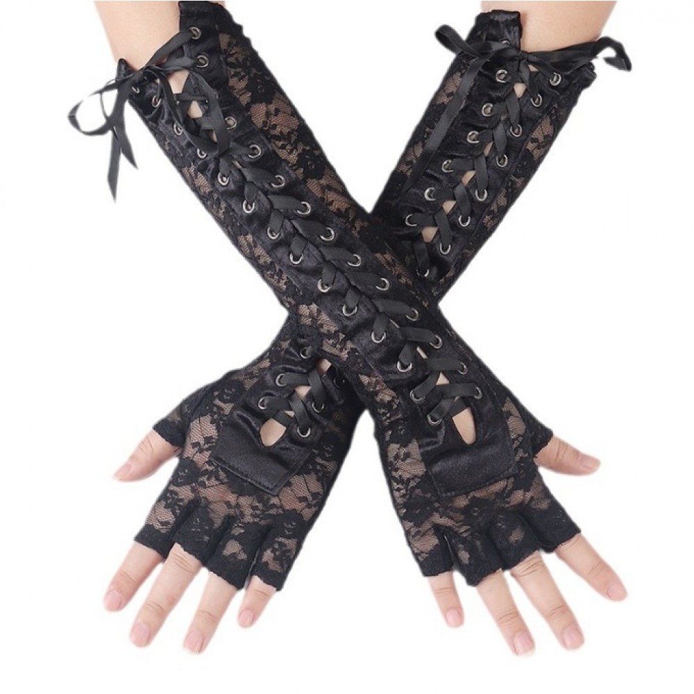 Чорні мереживні рукавички з корсетною шнурівкою, стиль вінтаж.