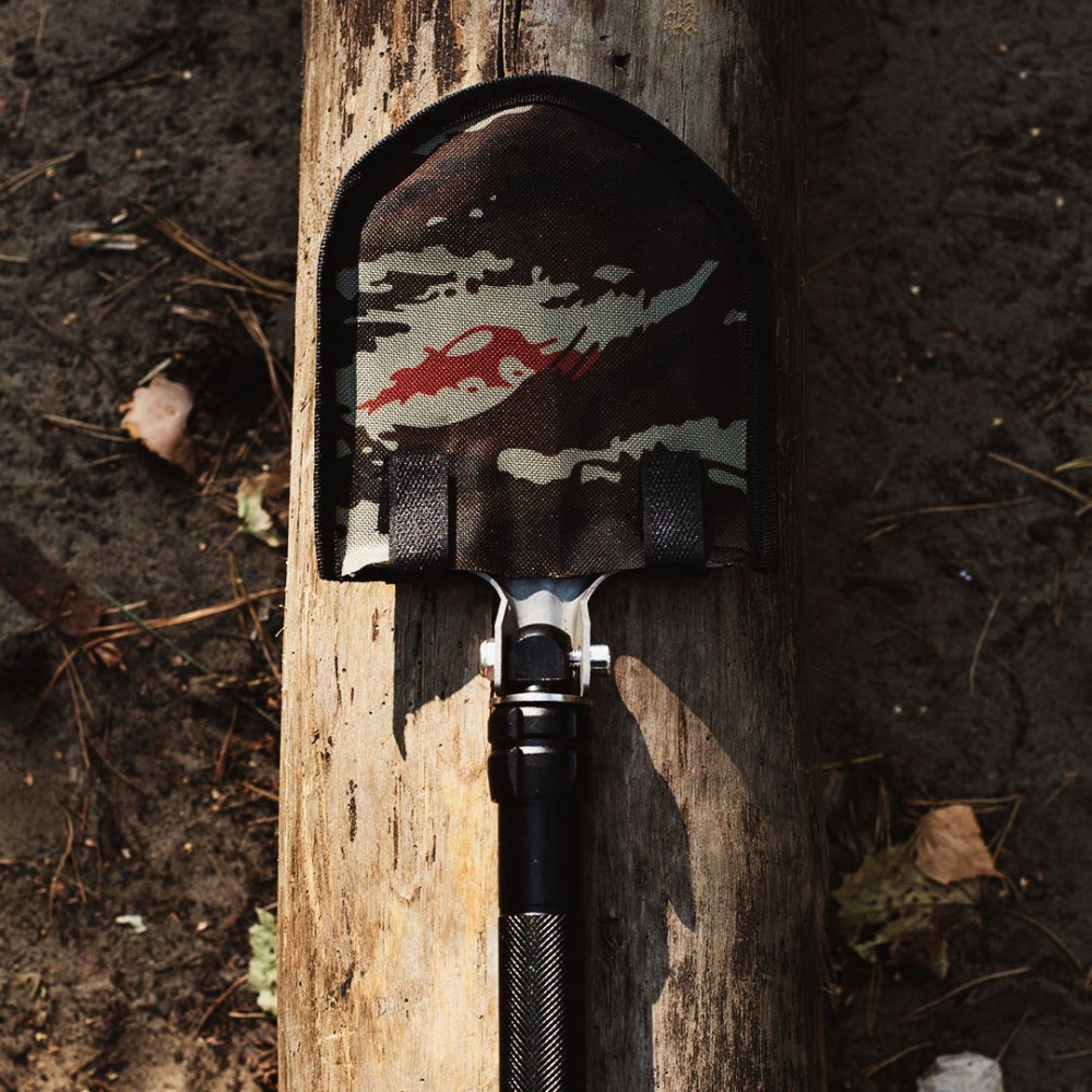 Сумка включає чохол для полотна лопати, який кріпиться до інструменту за допомогою міцних липучок, що запобігають випадковому вислизанню виробу при транспортуванні. У комплект також входить чорний ремінь з міцними карабінами. Він кріпиться до чохла за дві петлі, що дозволяє носити набір на плечі, як сумку, щоб необхідні інструменти завжди були під рукою.