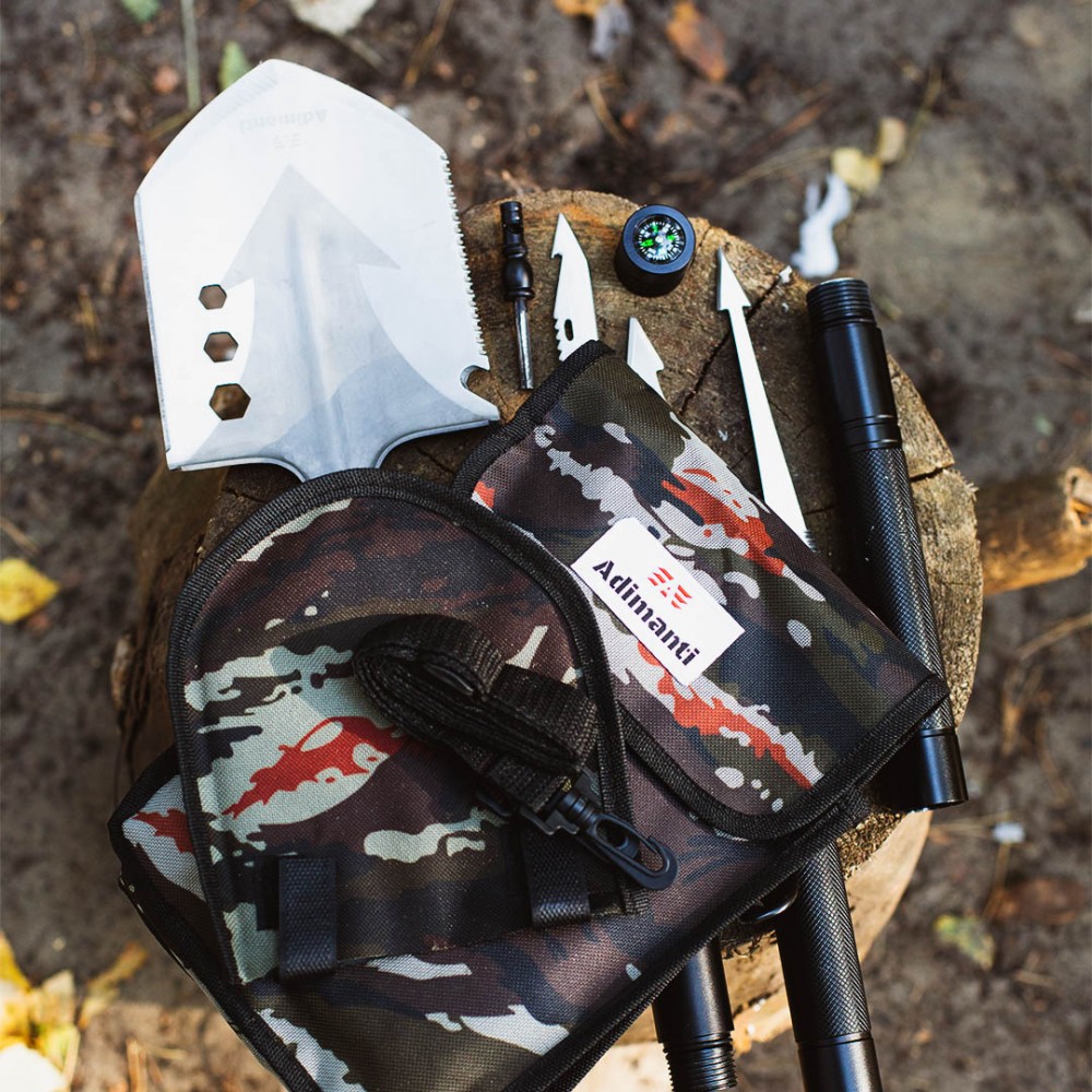 Лопата Adimanti HK001-багатофункціональний інструмент, який включає більше десяти додаткових елементів. Конструкція виробу відрізняється компактністю, довговічністю і простотою, щоб витримувати використання в екстремальних умовах і приносити максимальну користь мандрівникові.