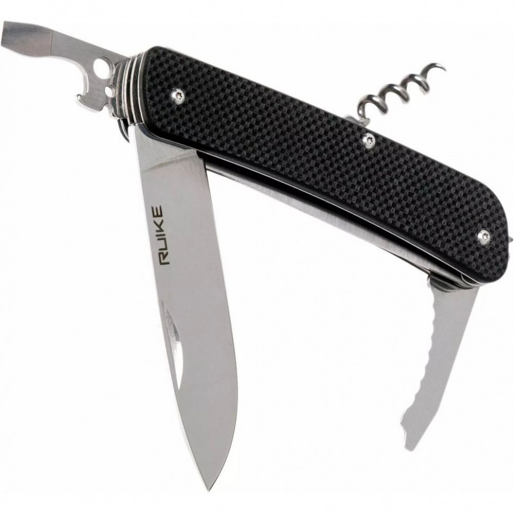 Бренд Ruike швидко набуває популярності, адже під ним випускаються якісні і довговічні складні ножі. Наприклад, модель L32 призначається для використання як на щоденній основі, так і в заміських поїздках. Це багатофункціональний ніж, в якому об'єднані відразу кілька корисних інструментів. Основним з них є гладко клинок заточений розміром 85 мм. Він має товщину по обуху 3 мм і цілком підходить для роботи не тільки з продуктами харчування, але і з різними іншими матеріалами. Для виготовлення всіх інструментів використовується нержавіюча сталь марки12С27. Це нержавійка шведського виробництва, що широко застосовується у виробництві туристичних та інших ножів. Її якості добре збалансовані і метал є одночасно твердим, але не тендітною, коррозиеустойчивым, добре зберігає заточку. До її складу входять такі легуючі елементи, як хром, марганець, молібден і кремній. Ця сталь загартовується при низьких температурах до твердості 58-59.