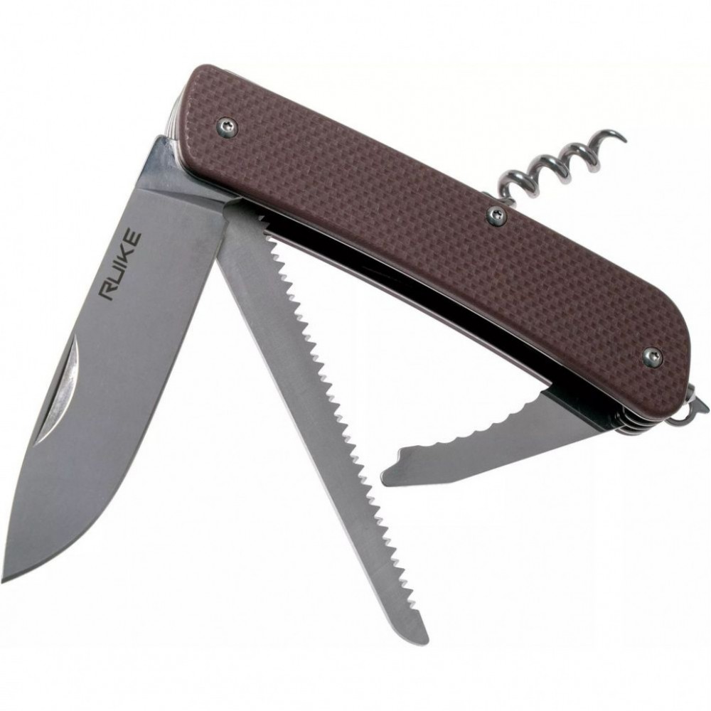 Бренд Ruike швидко набуває популярності, адже під ним випускаються якісні і довговічні складні ножі. Наприклад, модель L32 призначається для використання як на щоденній основі, так і в заміських поїздках. Це багатофункціональний ніж, в якому об'єднані відразу кілька корисних інструментів. Основним з них є гладко клинок заточений розміром 85 мм. Він має товщину по обуху 3 мм і цілком підходить для роботи не тільки з продуктами харчування, але і з різними іншими матеріалами. Для виготовлення всіх інструментів використовується нержавіюча сталь марки12С27. Це нержавійка шведського виробництва, що широко застосовується у виробництві туристичних та інших ножів. Її якості добре збалансовані і метал є одночасно твердим, але не тендітною, коррозиеустойчивым, добре зберігає заточку. До її складу входять такі легуючі елементи, як хром, марганець, молібден і кремній. Ця сталь загартовується при низьких температурах до твердості 58-59.