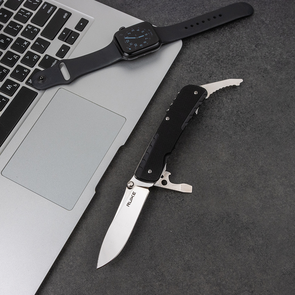 Модель Ruike LD-21 не тільки дуже функціональна, але і цілком безпечна. Положення леза ножа в ній блокується у відкритому вигляді за допомогою лінійного замку — Liner Lock.