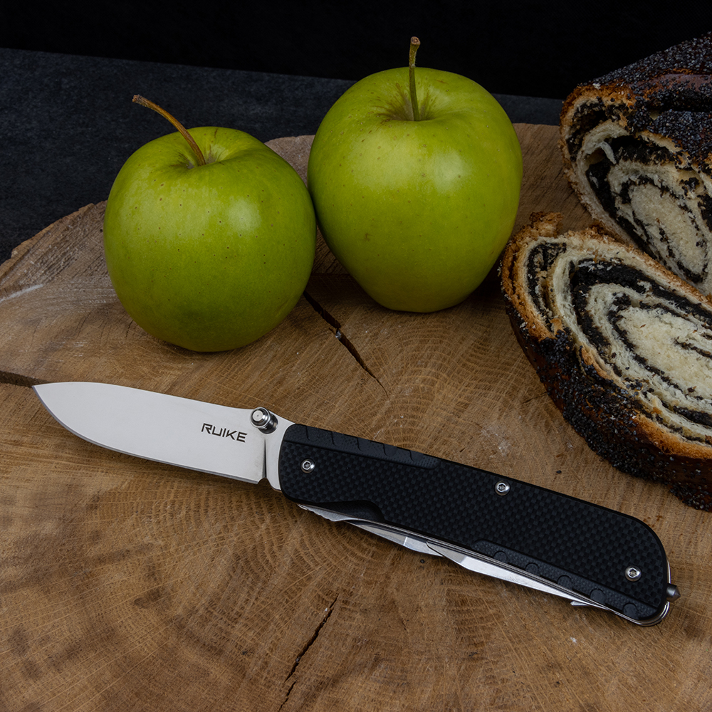 Всі інструменти Ruike LD-21 виготовляються з шведської сталі 12C27, що виплавляється в Швеції. Вони гладко відполіровані, а тому ніж просто відмінно виглядає. Головний інструмент моделі Ruike LD-21 — це добре заточений ніж, довжина якого складає 85 мм. Клинок досить міцний, оскільки його товщина — 3 мм Твердість металу ножа становить 58-59 HRC.