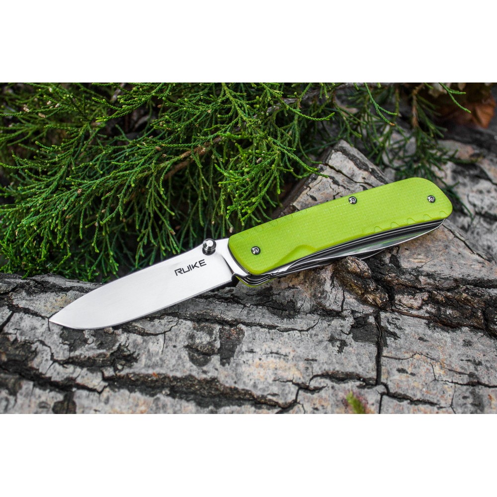 Любителям поїздок на природу точно сподобається ніж Ruike LD43. Це якісний та надійний інструмент, в якому передбачені практично всі можливі функціональності, актуальні для туризму чи інших варіантів дозвілля на природі. Розмір цього ножа в складеному вигляді зовсім невеликий — всього 114 мм, Але при цьому інструмент має цілком практичний клинок, довжина якого дорівнює 85 мм. Лезо зроблене гладким і фіксується лінійним замком Liner Locr, який не дозволяє йому складатися в той час, коли ніж використовується. Лезо, як і інші інструменти, зроблено нержавіючим: для нього використовується сталь 12C27, що виплавляється в Швеції.