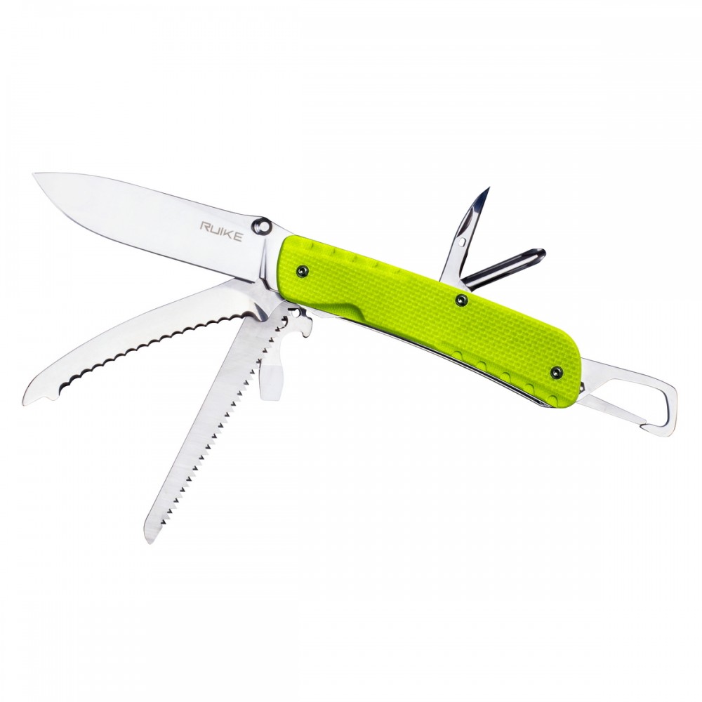 Дана модель дозволить легко впоратися практично з будь-яким видом робіт. Всього в Ruike LD43 закладено 15 функцій. Всі інструменти зберігаються всередині одного загального корпусу і дістаються з нього в міру необхідності. Однак повністю виймається тільки пінцет. До послуг користувача пропонуються викрутки зі шліцами різної форми (пряма і хрестова), два отвори, які використовуються для зняття ізоляції з проводів, відкривачка для консервів і для зняття кришок з пляшок, склобій, шило, пила, серрейторный ніж з клинком особливої форми. Цей набір інструментів стане в нагоді як на риболовлі або невеликому пікніку, так і в тривалій туристичному поході.