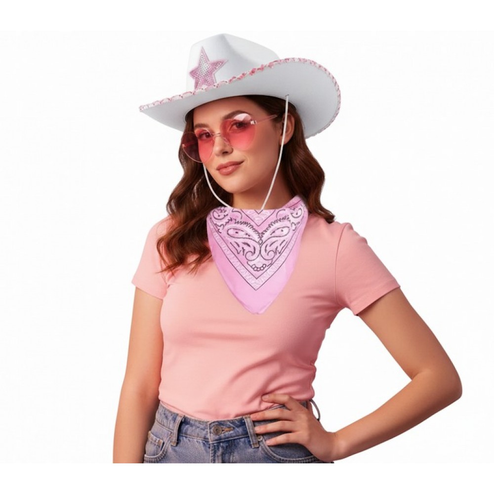 Біла ковбойська шляпа з зіркою, рожеві окуляри та хустка – для тих, хто йде по життю з вогнем в очах