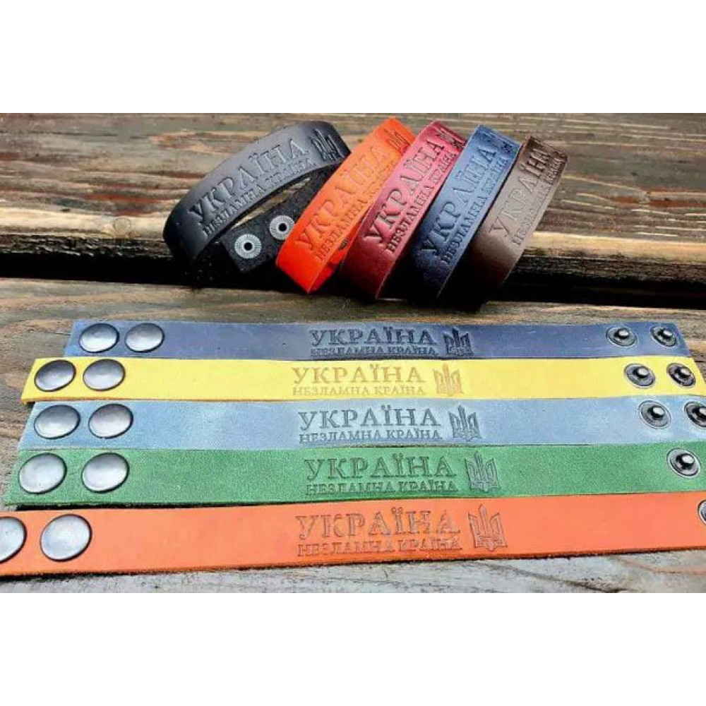 Натуральні шкіряні браслети з написом "Україна". Вони є символом національного самовизначення та гор..