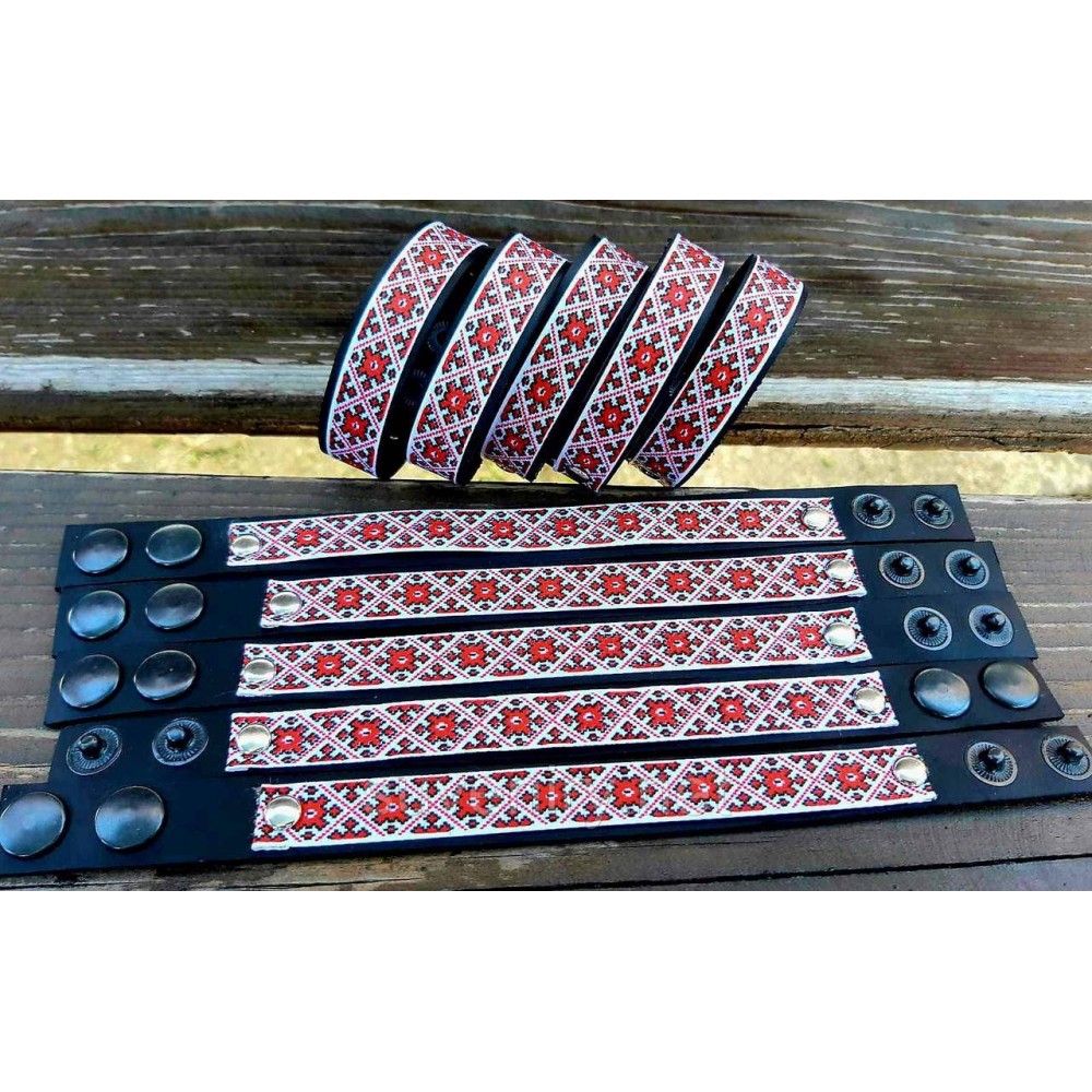 Зручні та стильні браслети на руку з натуральної шкіри, прикрашені традиційним українським орнаменто..