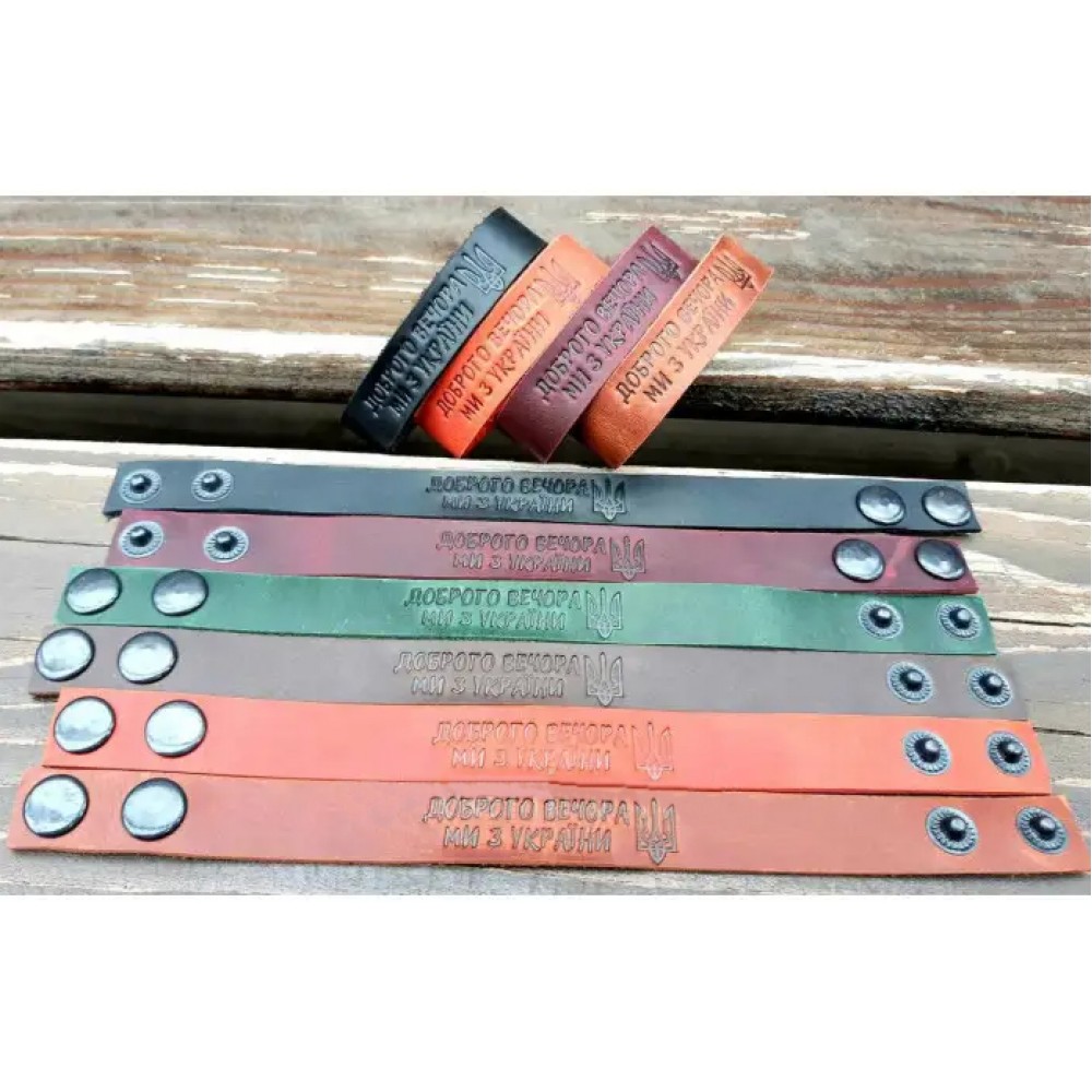 Брастети на руку з натуральної шкіри з написом "Доброго вечора ми з України". Відмінний спосіб демонструвати свою любов до рідної країни.