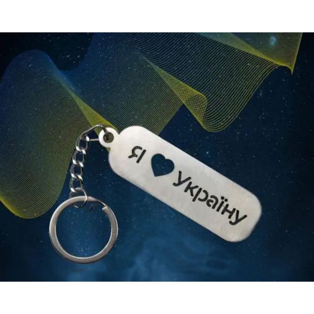 Брелок для ключів металевий нержавіючий "Я люблю Україну" - Автомобільний