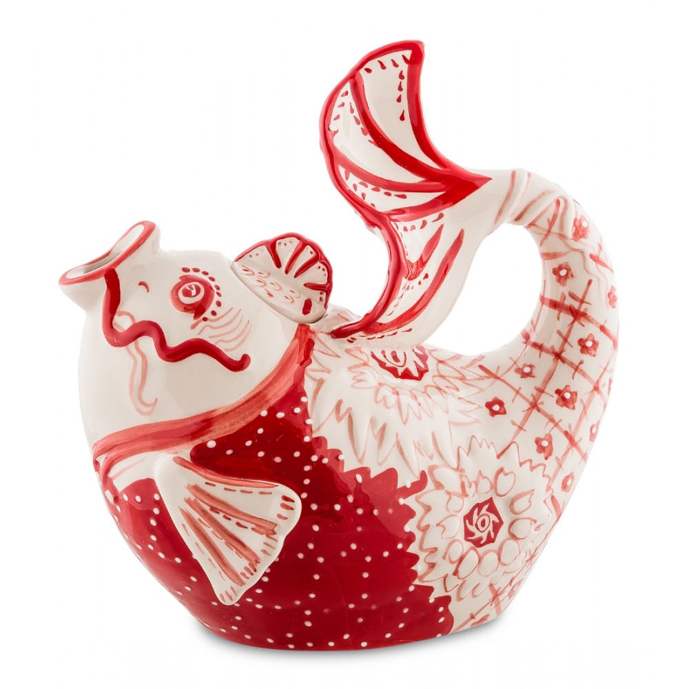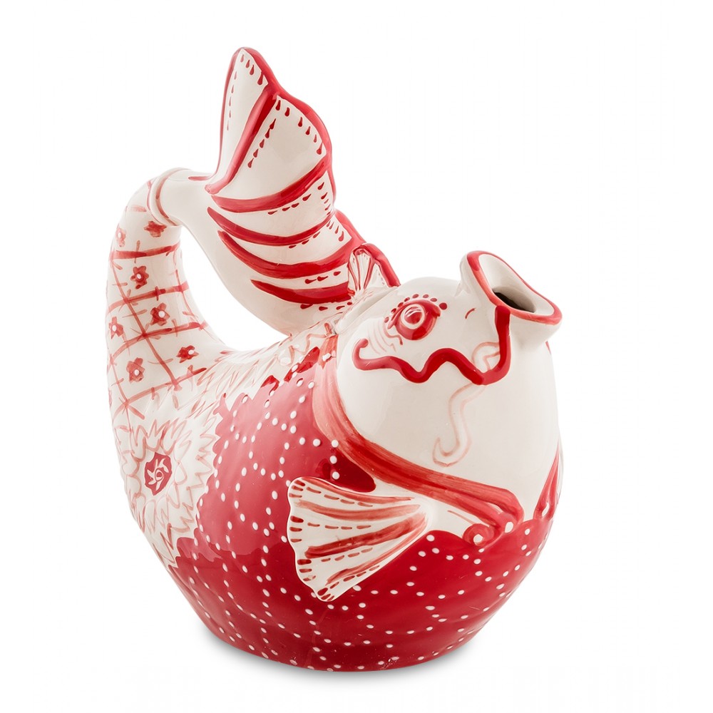 Заварник ''Рыба'' высотой 24 см.; "...Рыбка будто мотылек ; Над водой взлетела. ; Глазик черный уголек ; И как льдинка тело. ; Плавники дрожат, трепещут, ; Спинка выгнулась дугой, ; Чешуинки так и блещут ; У красавицы такой..."; Н.Нищева