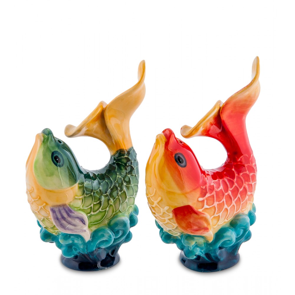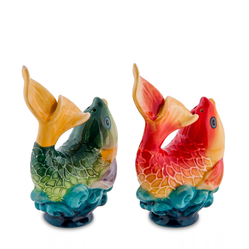 Набор соль-перец ''Золотая рыбка'' высотой 12 см.; Золотая рыбка - чудесный помощник, исполнитель желаний, отличается справедливостью, честностью и бескорыстием.