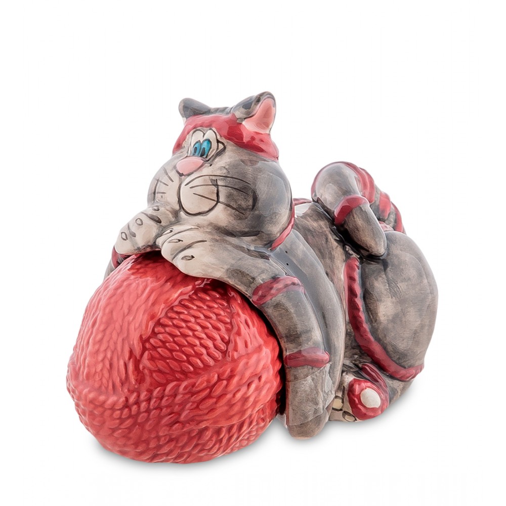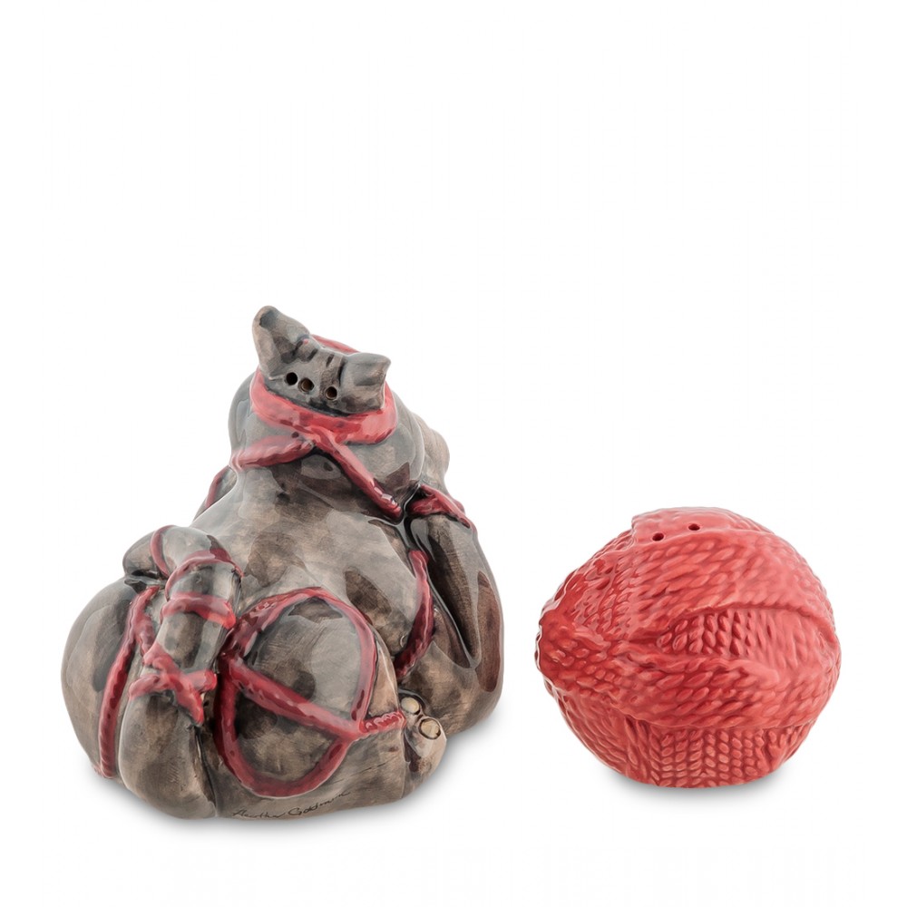 Набор соль-перец ''Котенок с клубком''.; "Котёнок возится с клубком:; То подползет к нему тайком,; То на клубок начнет кидаться,; Толкнет его, отпрыгнет вбок...; Hикак не может догадаться,; Что тут не мышка, а клубок."; А. Барто