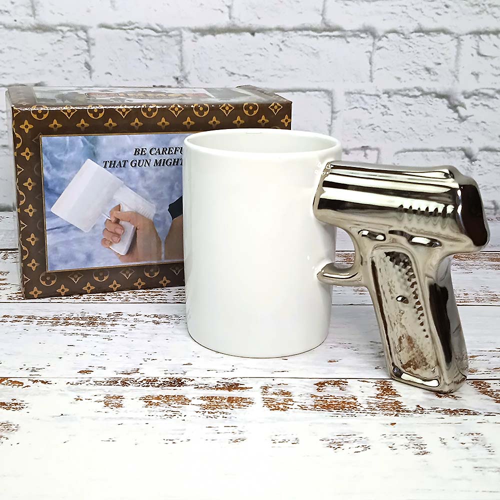 Чашка Пістолет (біла з срібним)