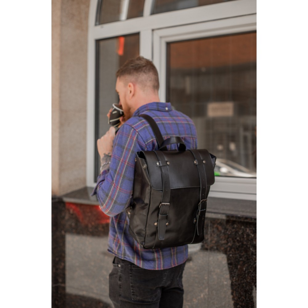 Чоловічий шкіряний рюкзак Hankle H1 натуральна шкіра італійський Краст, колір Чорний