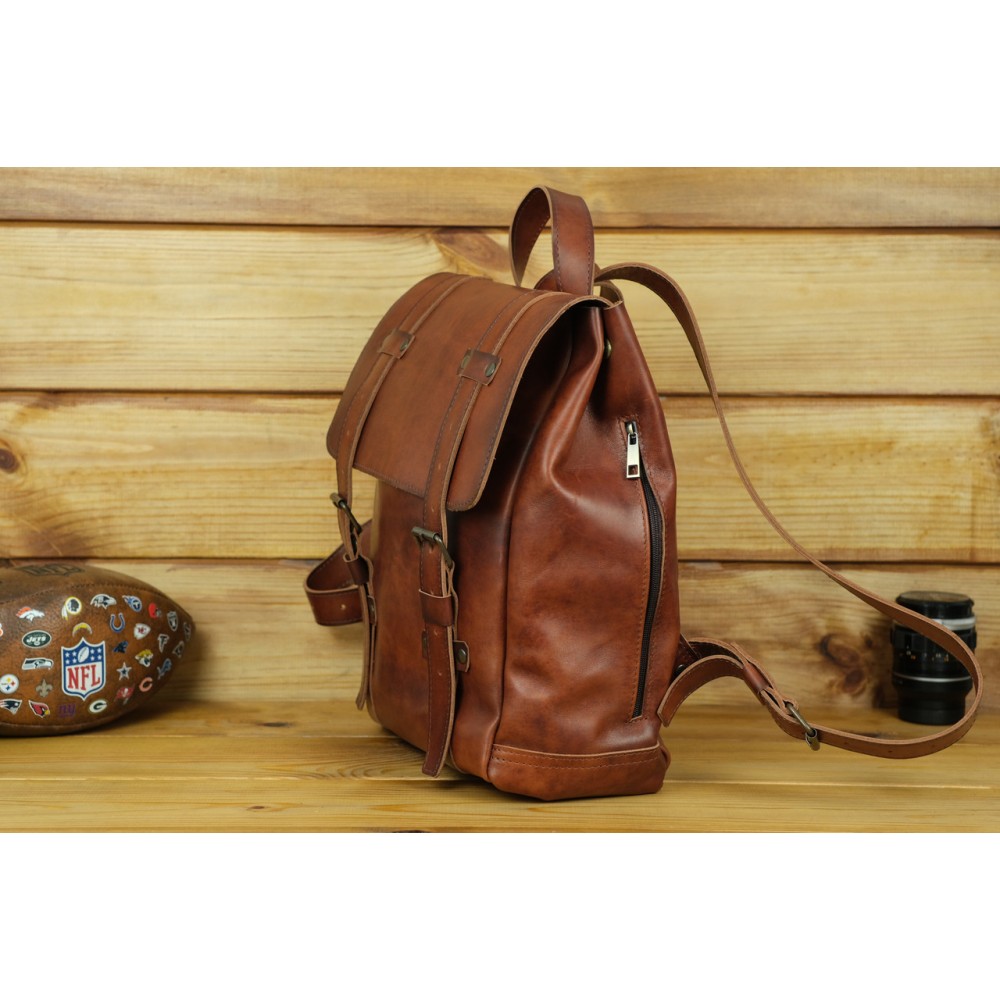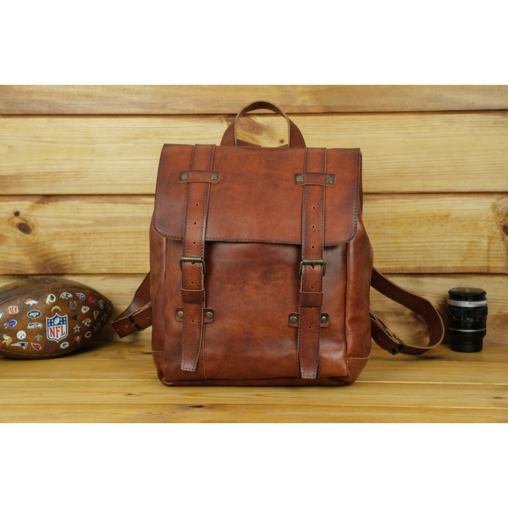 Чоловічий шкіряний рюкзак Hankle H1 натуральна шкіра італійський Краст, колір коричневий відтінок Вишня