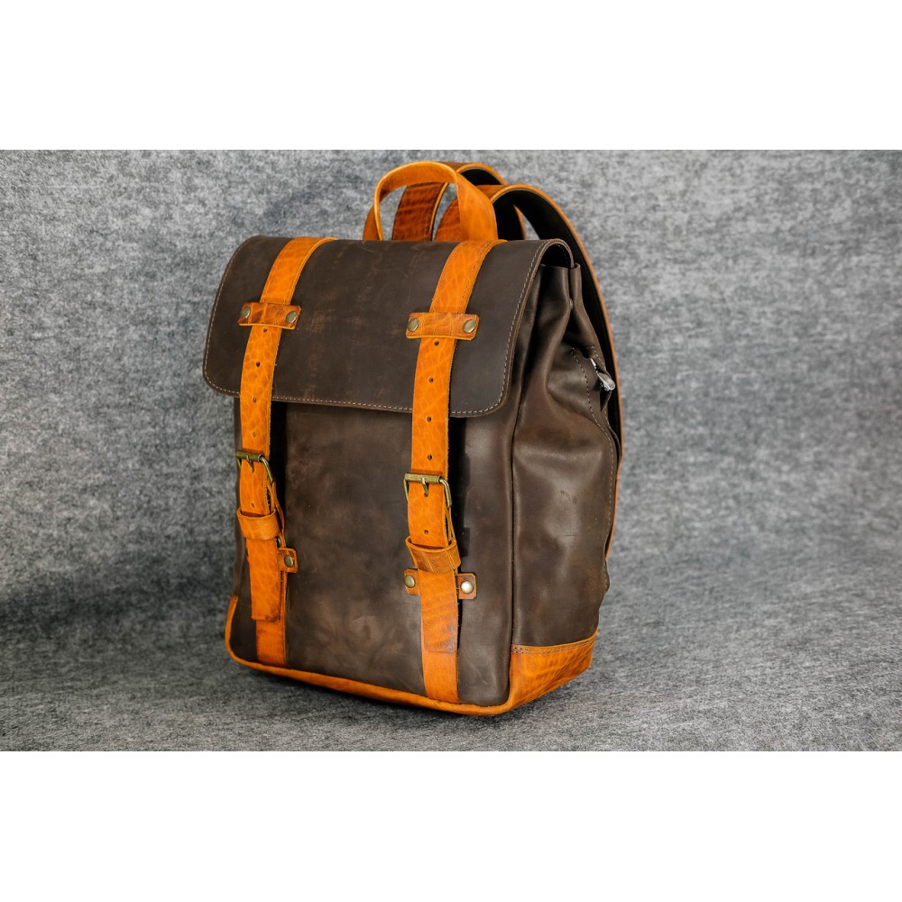 Чоловічий шкіряний рюкзак "Hankle H1" натуральна Вінтажна шкіра, колір коричневий Шоколад + Бурштин