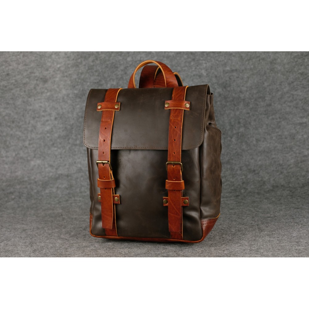 Чоловічий шкіряний рюкзак "Hankle H1" натуральна Вінтажна шкіра, колір коричневий Шоколад + Коньяк