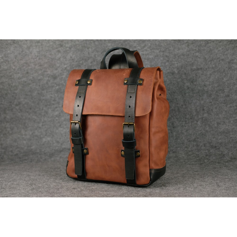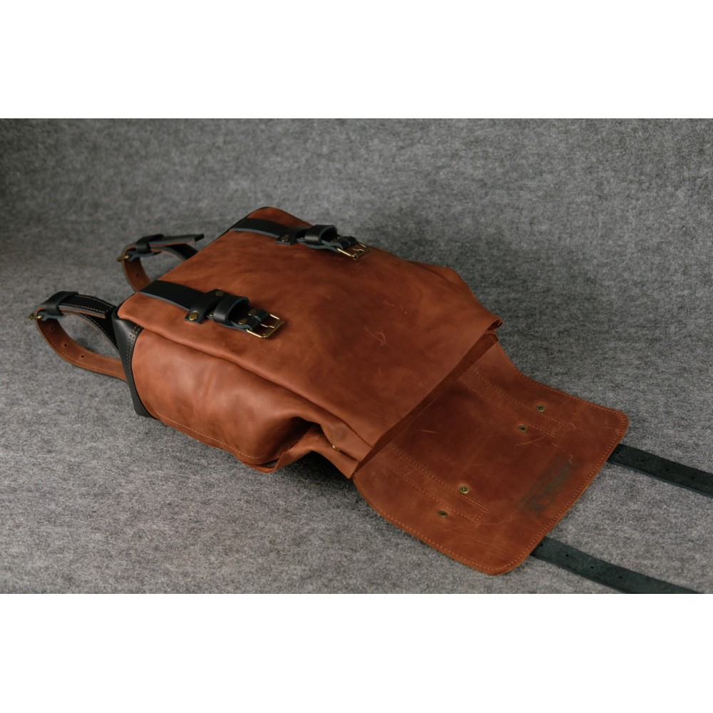 Чоловічий шкіряний рюкзак "Hankle H1" натуральна Вінтажна шкіра, колір коричневий відтінок Коньяк + Чорний
