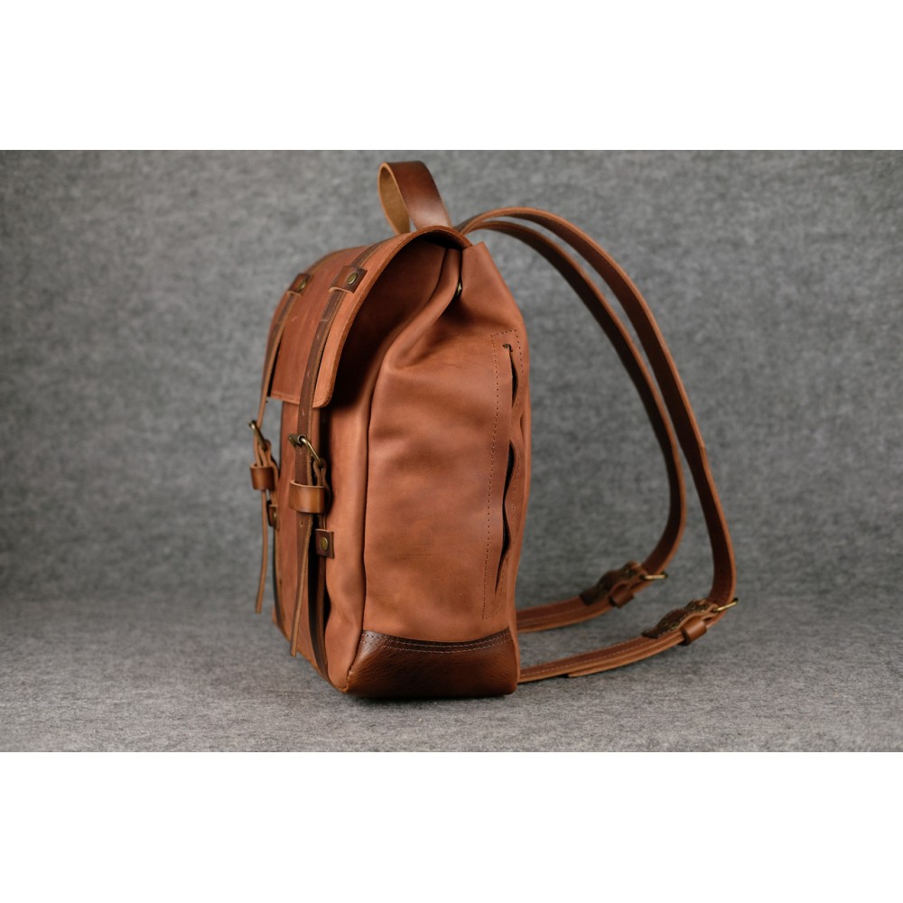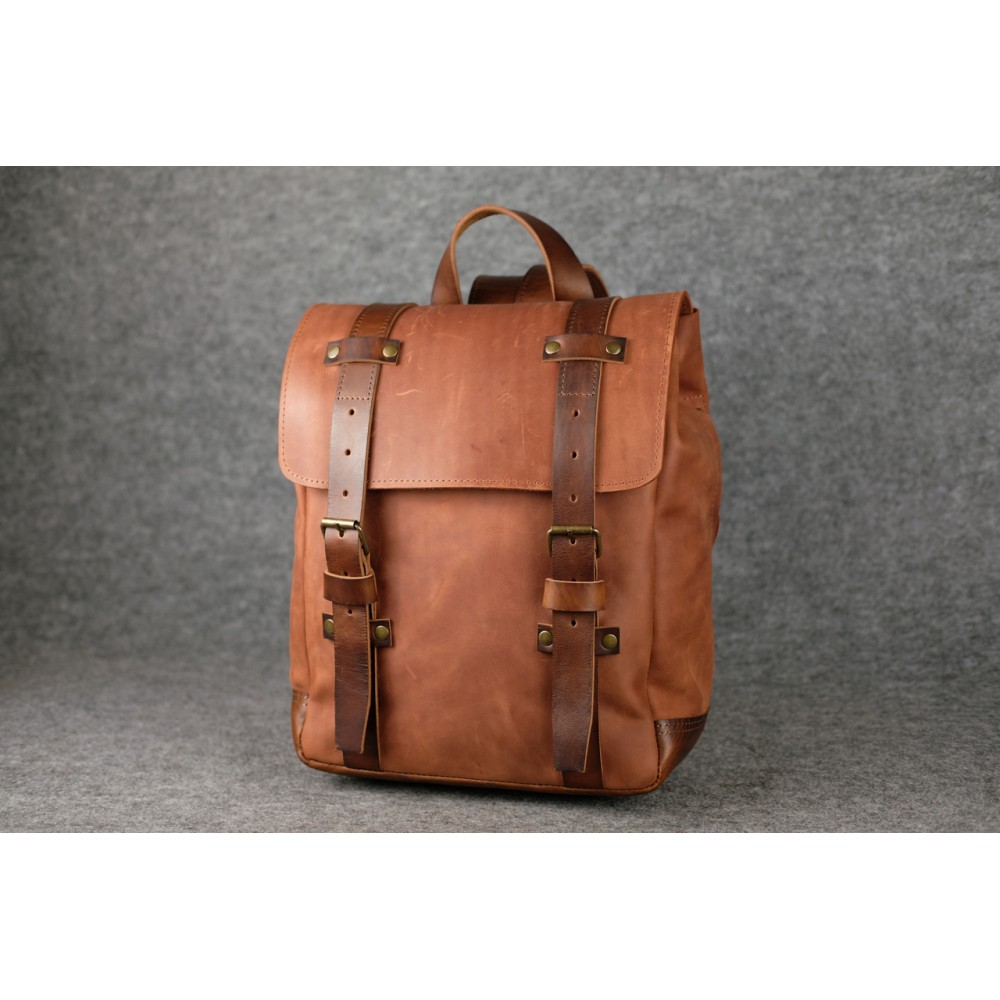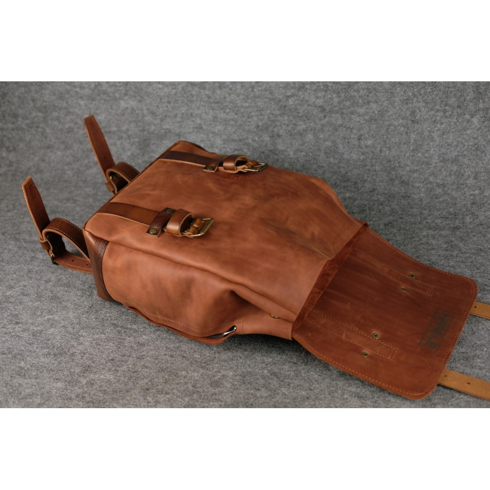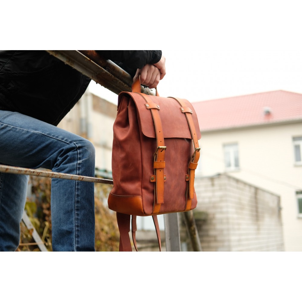 Чоловічий шкіряний рюкзак "Hankle H1" натуральна Вінтажна шкіра, колір коричневий відтінок Коньяк + Вишня