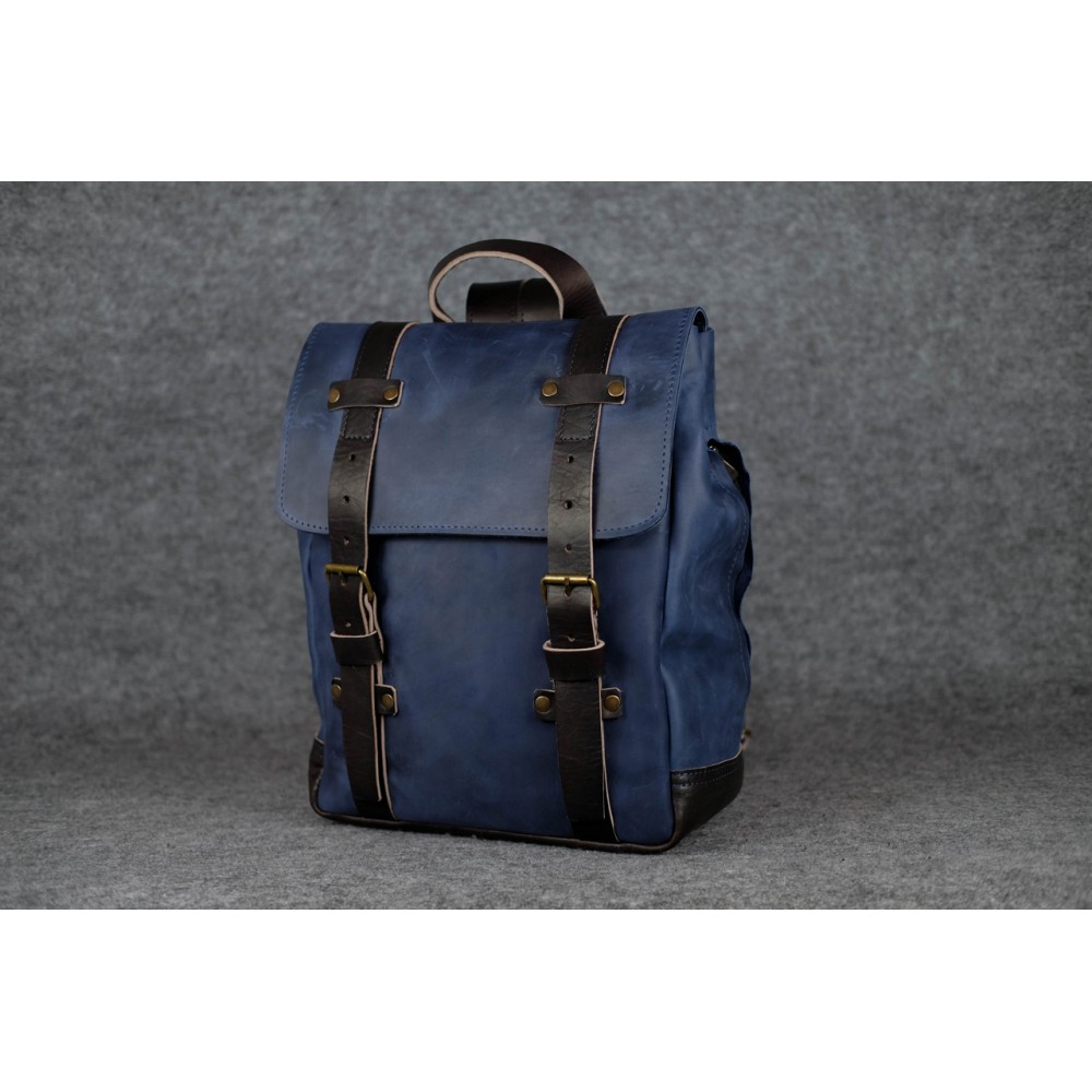 Чоловічий шкіряний рюкзак Hankle H1 натуральна Вінтажна шкіра, колір Синій + коричневий, відтінок Кава