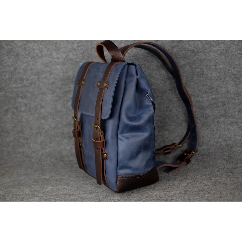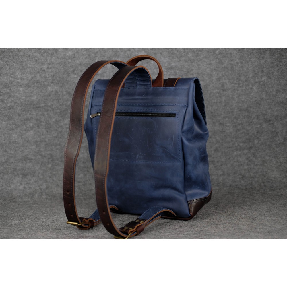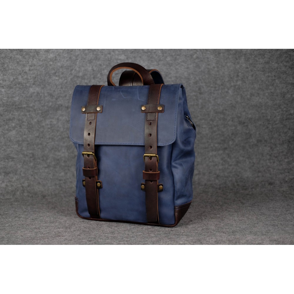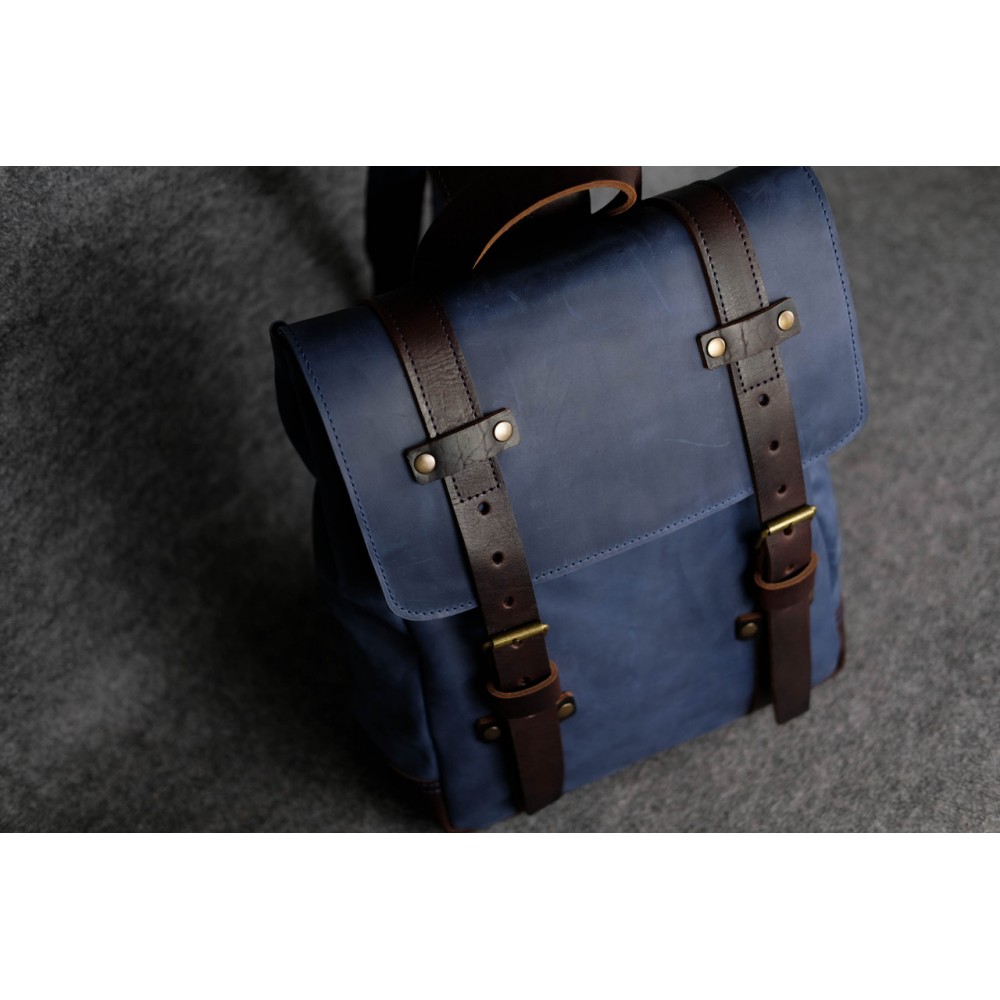 Чоловічий шкіряний рюкзак Hankle H1 натуральна Вінтажна шкіра, колір Синій + коричневий, відтінок Вишня