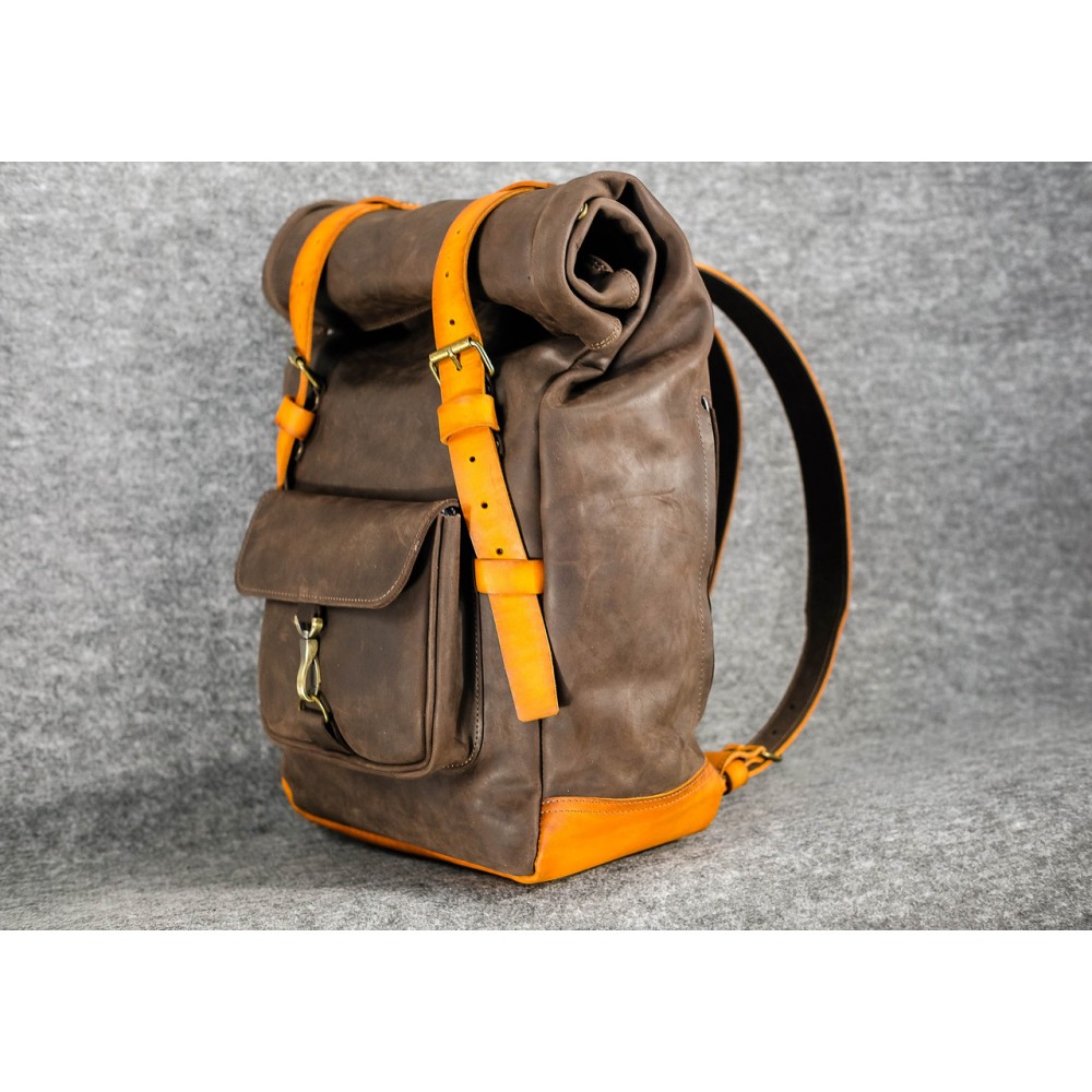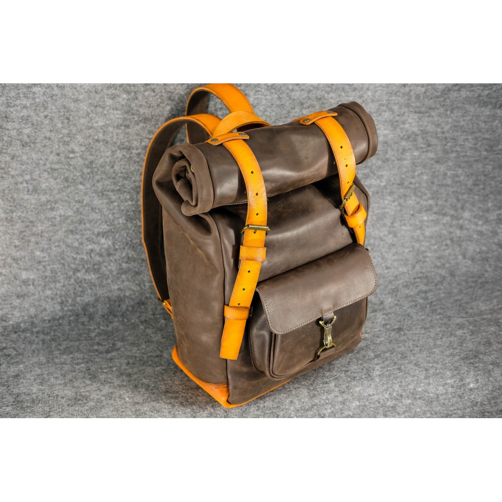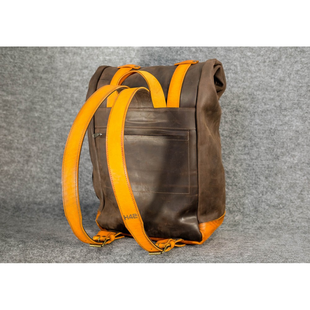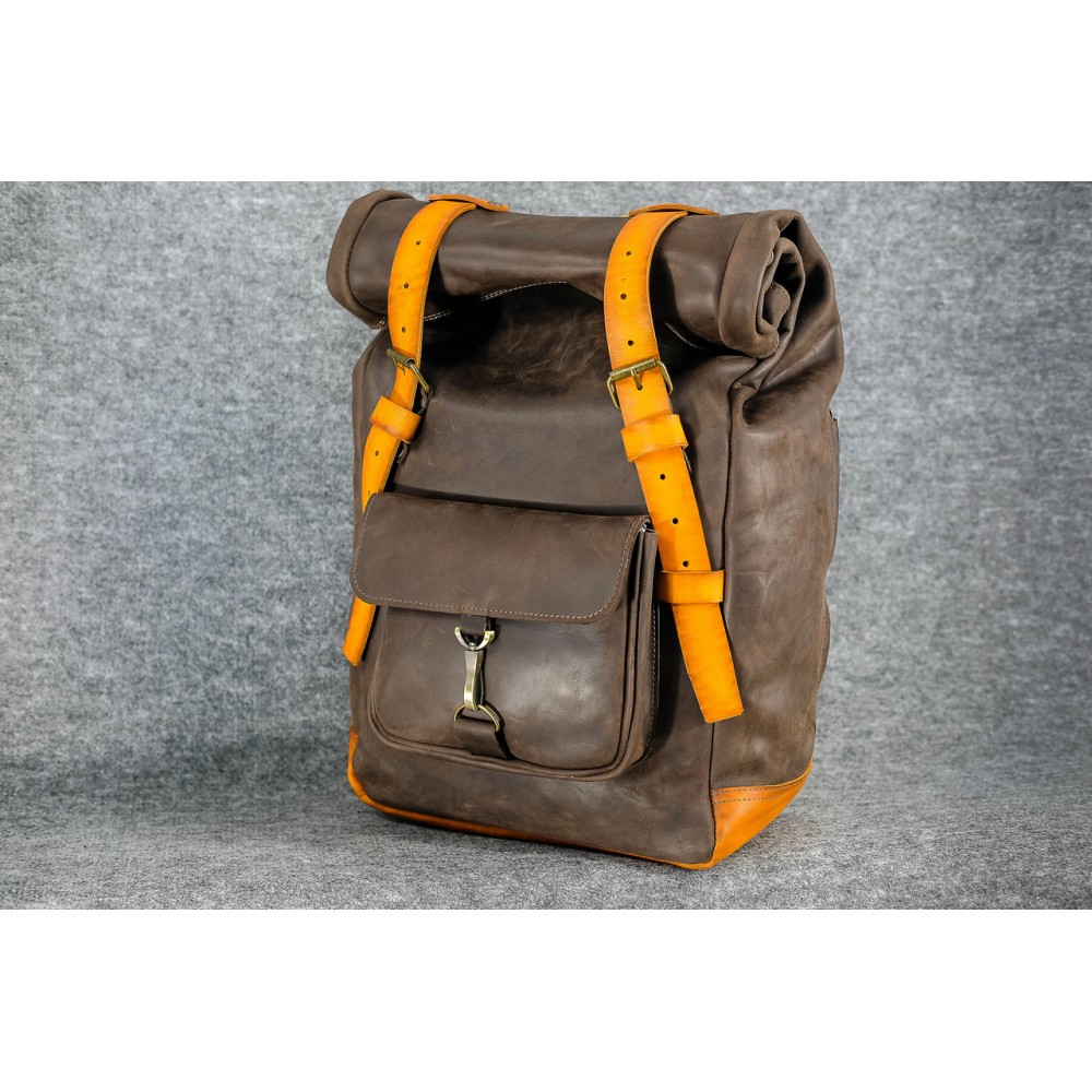 Чоловічий шкіряний рюкзак "Hankle H42" натуральна Вінтажна шкіра, колір Шоколад + Бурштин