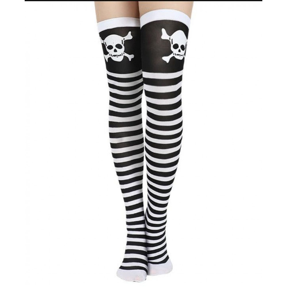 Чорні та білі панчохи для Хелловіну «смуги та череп», вище коліна, універсальний розмір