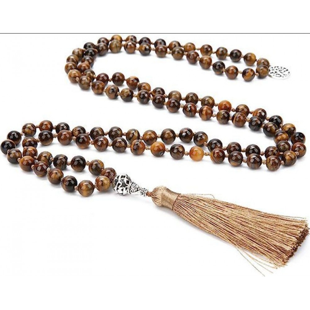 Чотки з натурального тигрового ока 108 бусин, 8 мм, з китицею