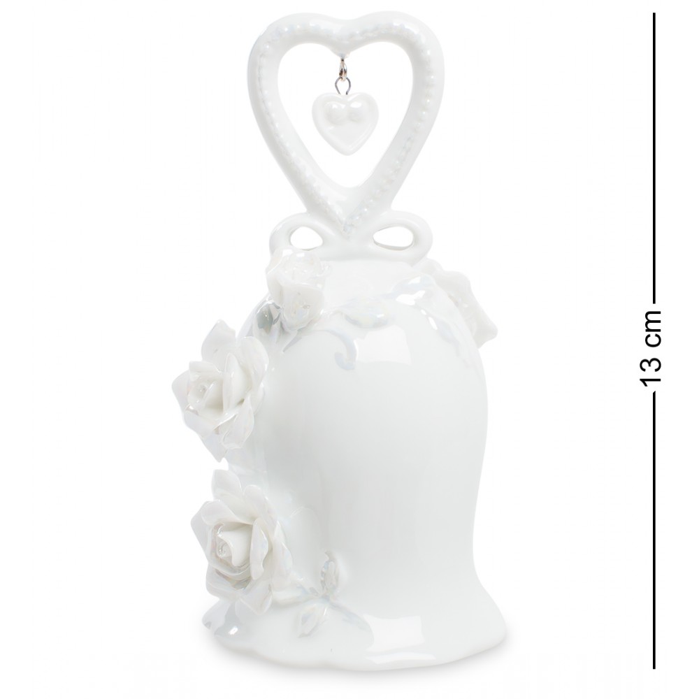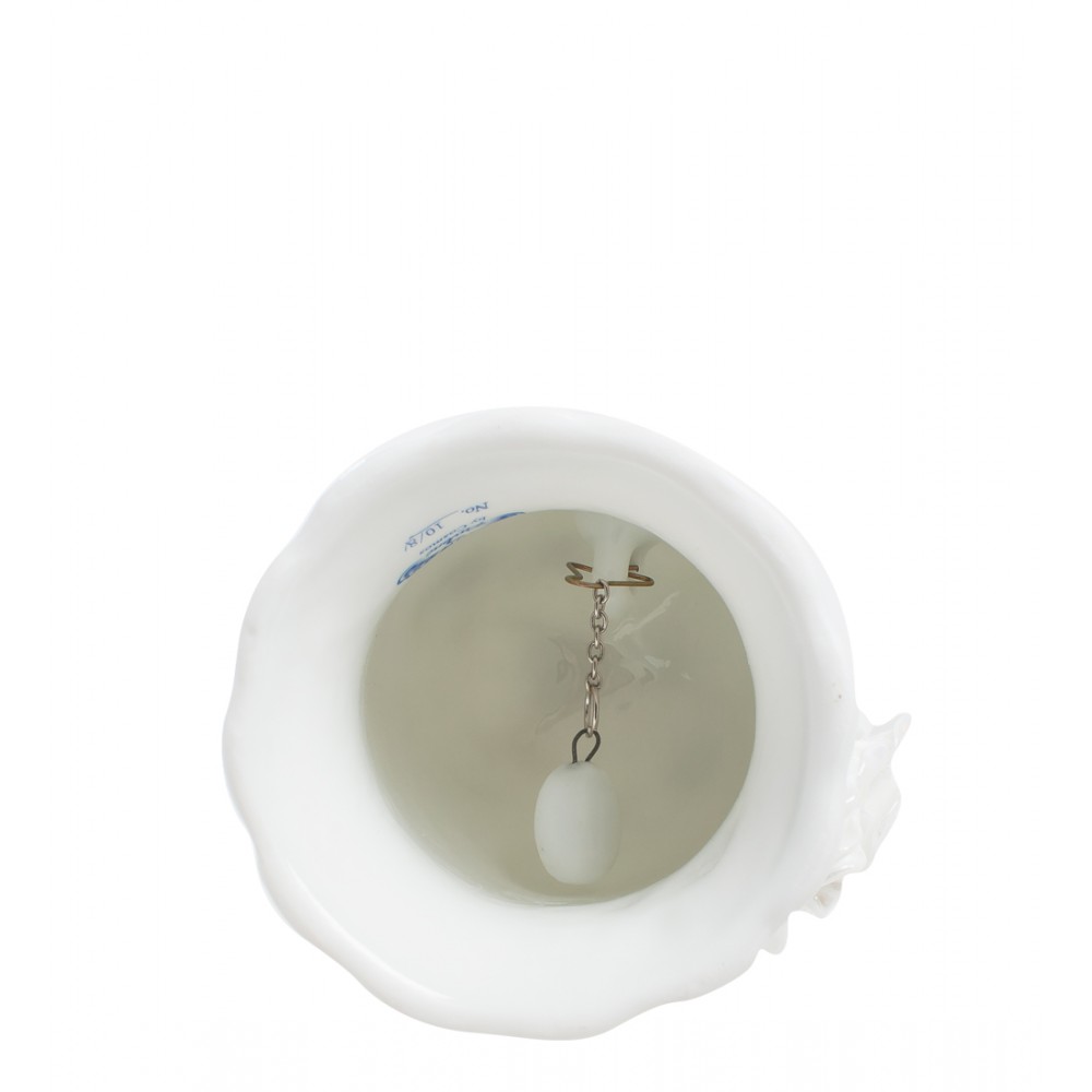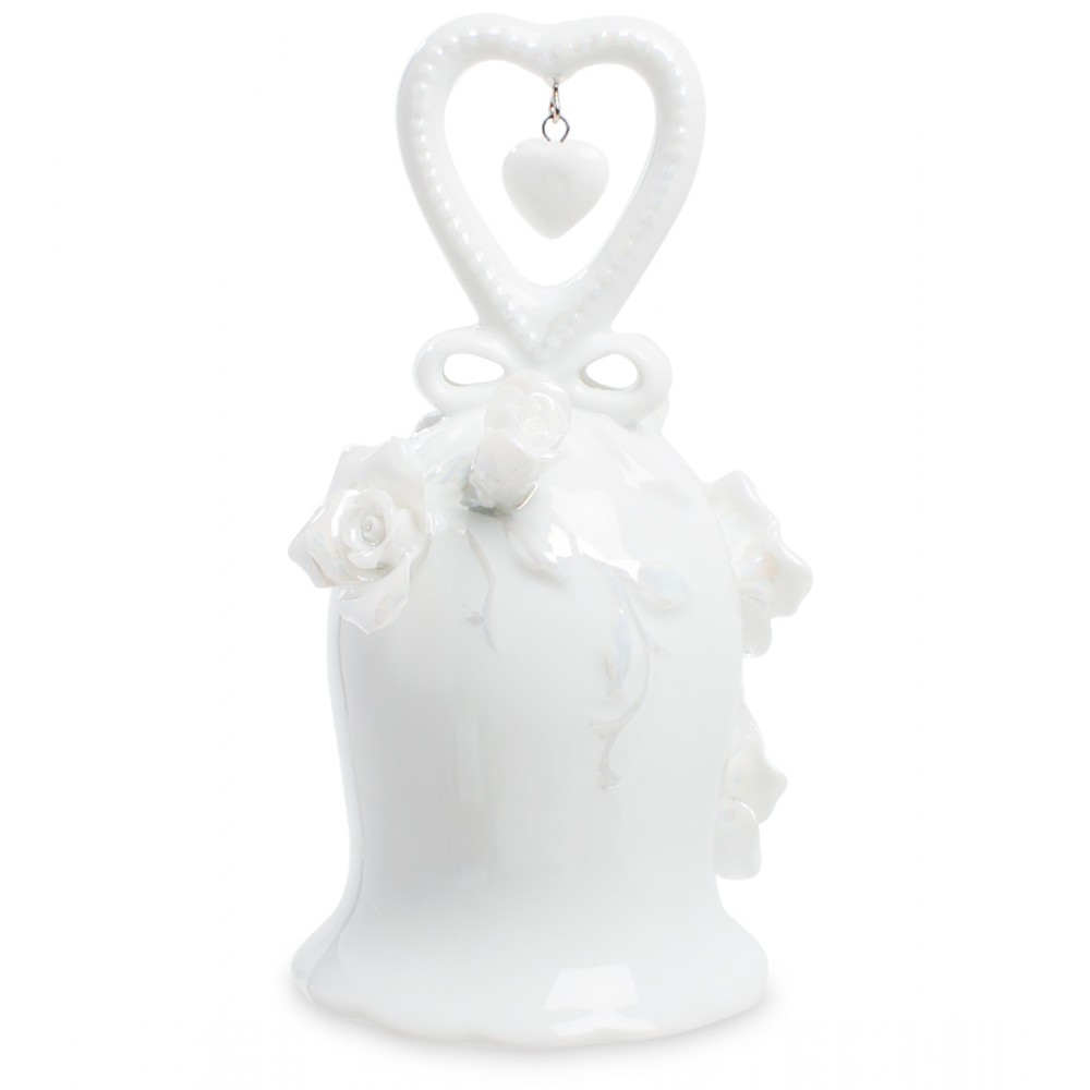 Этот колокольчик изготовлен из фарфора. Звон него не громкий и резкий, как у медного, а тихий и мелодичный. Но, тем не менее, домашним сигналом « всем собраться вместе » такой колокольчик послужить способен. Белая его поверхность украшена цветами – тоже белыми. Ручка выполнена в том же цвете, лишь слегка выделена розоватым узором. Форма ручки – в виде сердечка, а, значит, подарить такой колокольчик можно любимому человеку, тем более, в День Святого Валентина – такой подарок запомнится надолго, не то, что простая открытка-валентинка. Тогда своим нежные колокольным звоном подарок будет всегда напоминать о вашей любви…