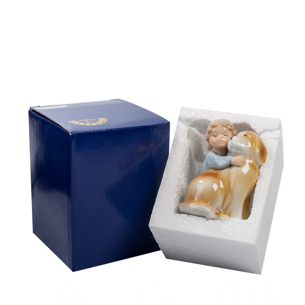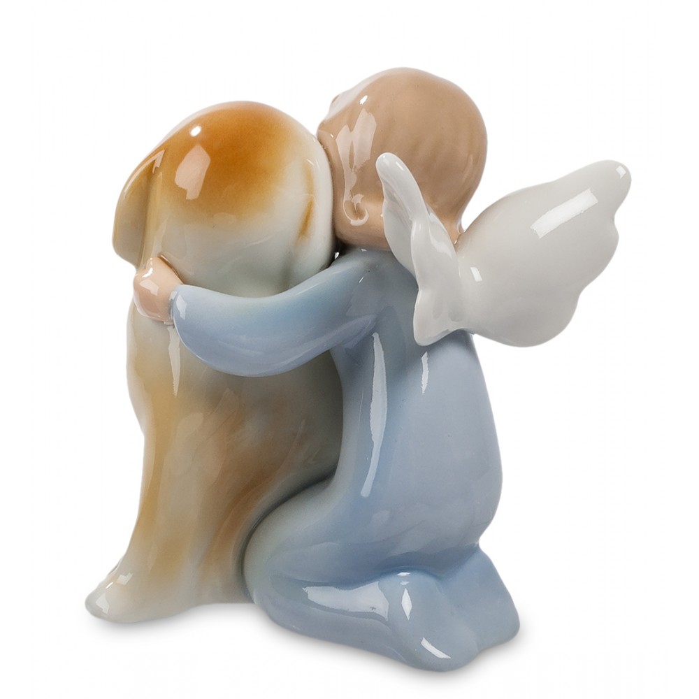 Маленький мальчик с крупным псом – большие и верные друзья. Малыш – симпатичный, как ангелочек, вот даже крылышки у него за спиной видны. К четвероногому другу он прижался, стараясь его приласкать и погладить. Пес отвечает взаимностью, нагнув голову к малышу: вот-вот лизнет его прямо в лицо. Такая дружба бывает долгой и верной: мальчик будет расти, а пес будет ему и партнером по играм, и охранником, и помощником. Кому подарить такую фигурку? Ребенку, который мечтает о собственной настоящей собаке? Нет, лучше тому, у кого собака уже есть – это будет просто портретом двух верных друзей, сделанным на память.