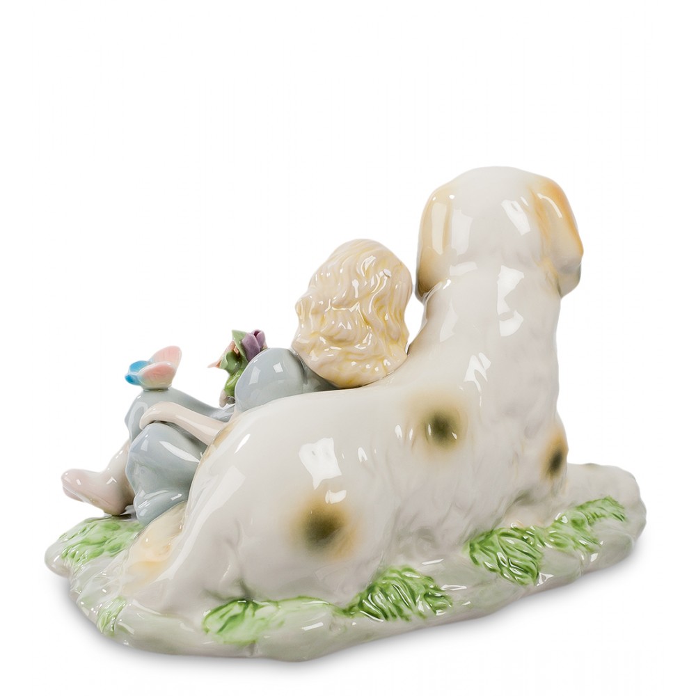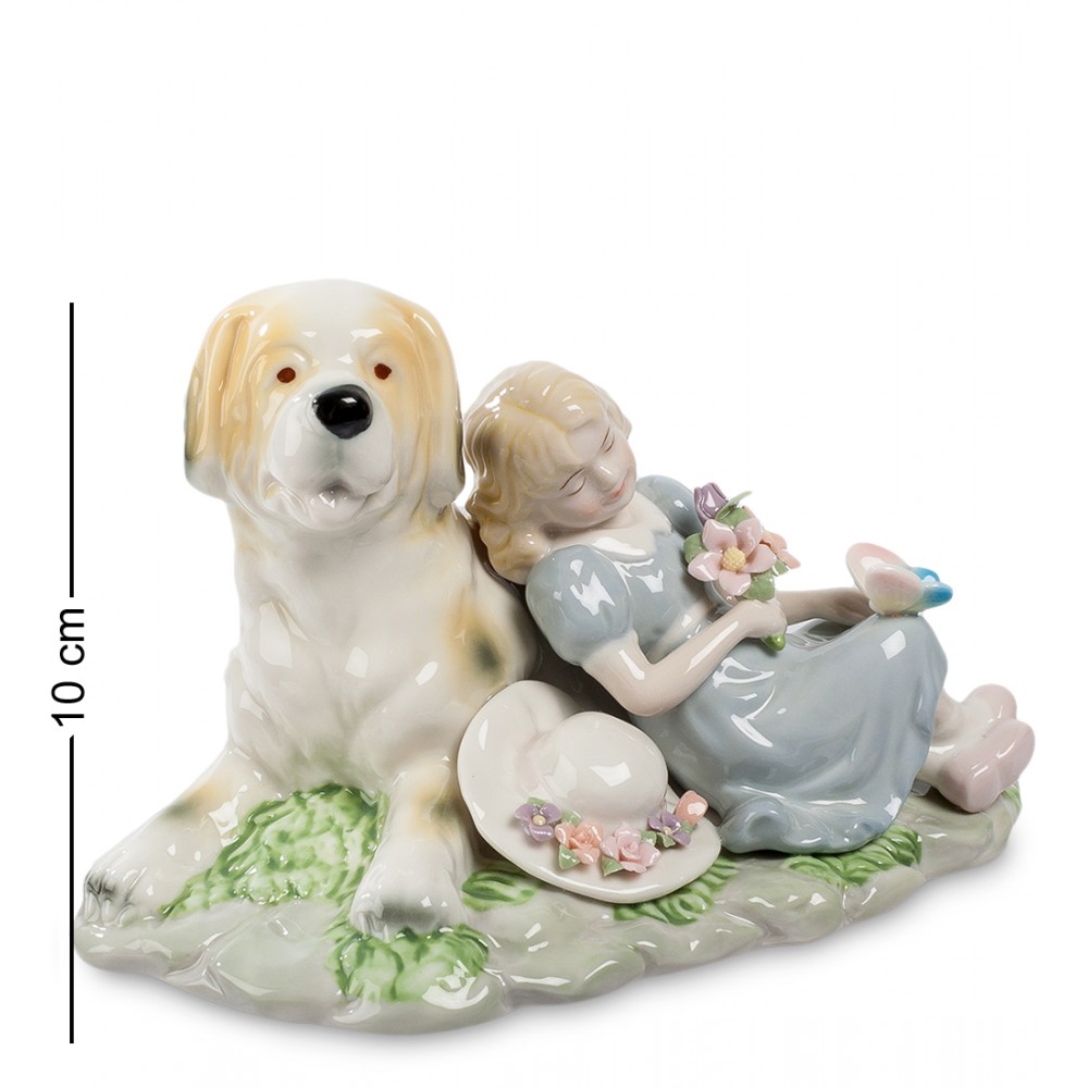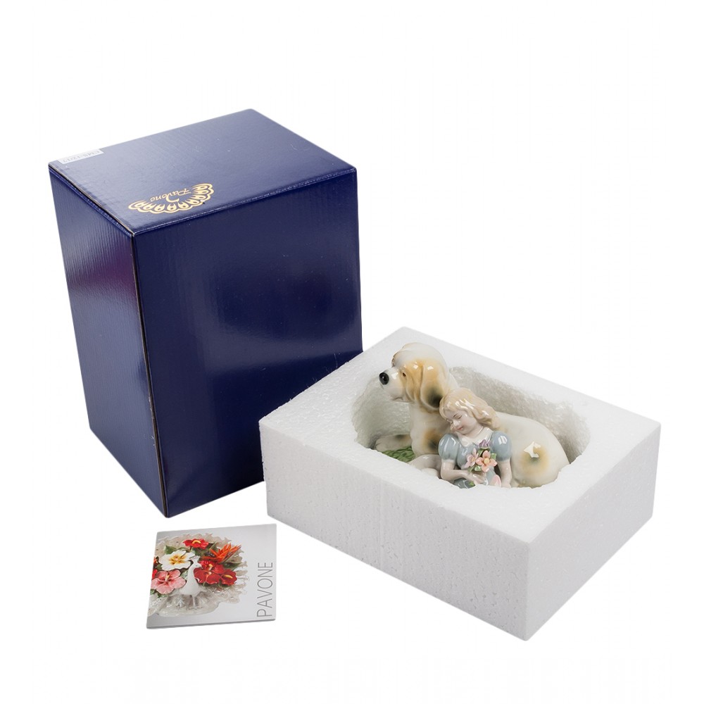 CMS-12/17 Фигурка "Девочка и собака" (Pavone) - это потрясающая керамическая статуэтка, на которой изображена трогательная сцена девочки и ее собаки. Фигурка изображает девочку, сидящую на лужайке, с собакой, сидящей рядом с ней, рядом с ее шляпой. Девочка держит в руках букет цветов, что придает композиции естественную красоту.