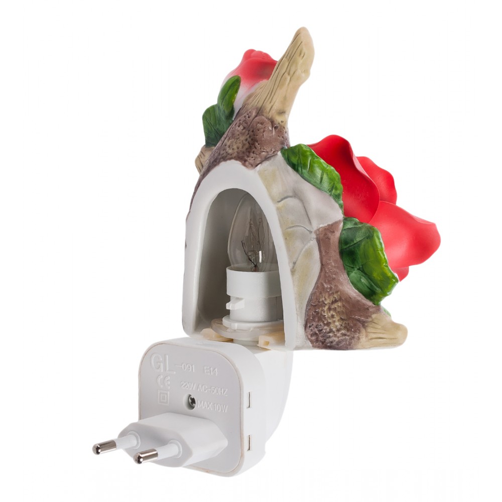 Маленький светильник-ночник включается прямо в электрическую розетку. На стене над розеткой расцветет алая роза среди зеленых листьев на деревянной подставке. Но нет здесь никакого дерева – все от сучков до лепестков выполнено из фарфора. И когда вы повернете выключатель, роза буквально засветится в темноте, становясь еще красивее, хоть это и кажется невозможным. Слабый свет ночника ни в каком другом оформлении не выглядит таким красивым. Кажется, что не просто свет лапочки прогоняет ночную тьму, а сам прекрасный цветок согревает все вокруг. В комнате сразу становится уютно и тепло. Приятных вам снов!