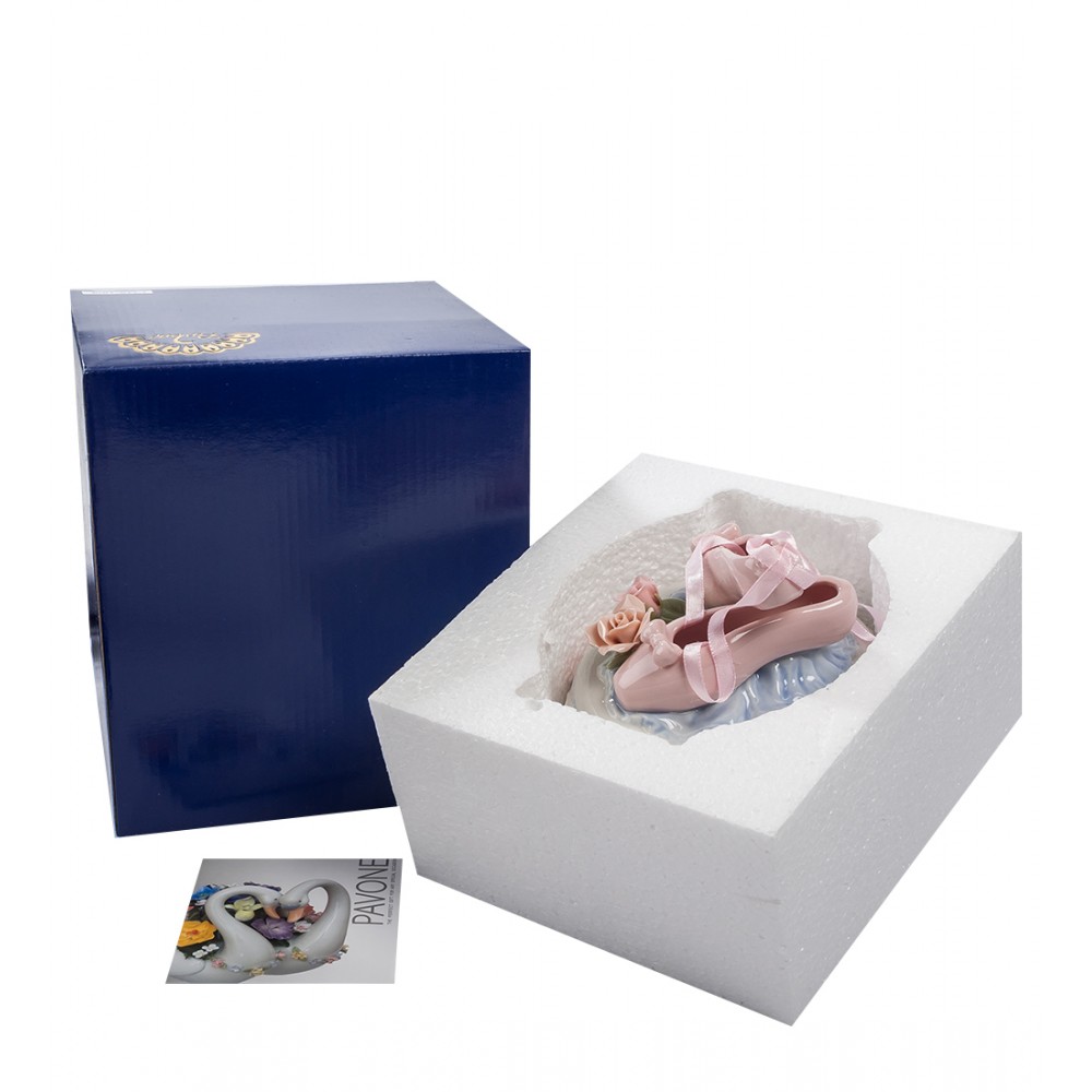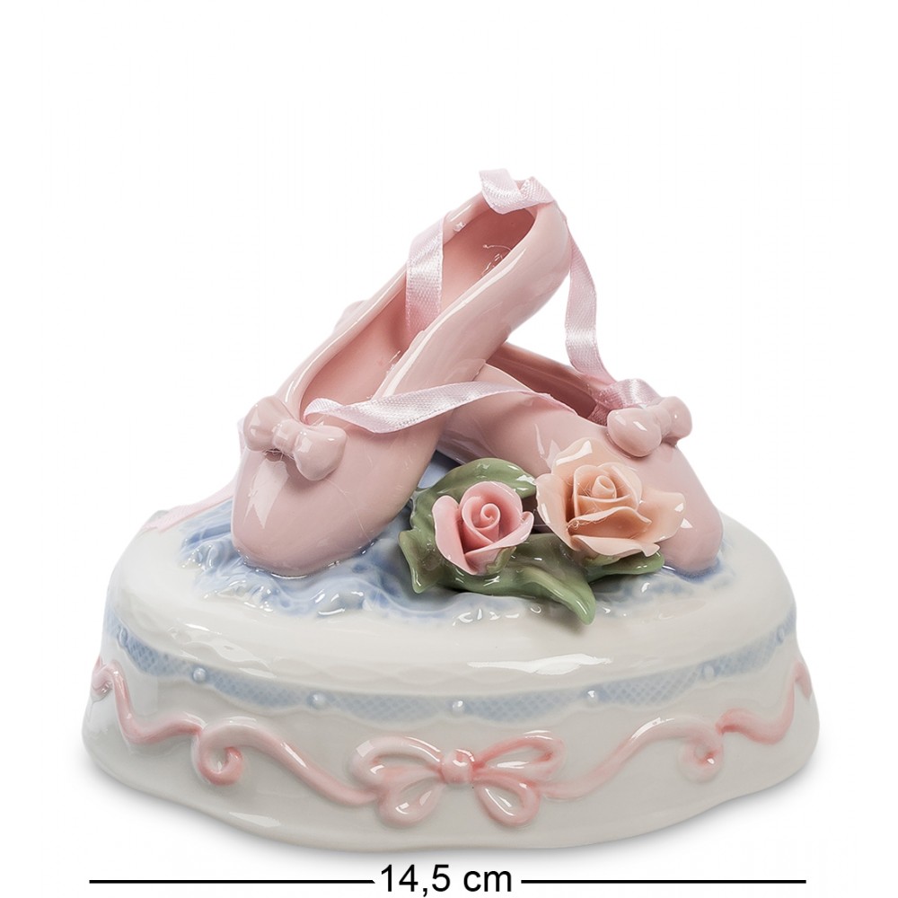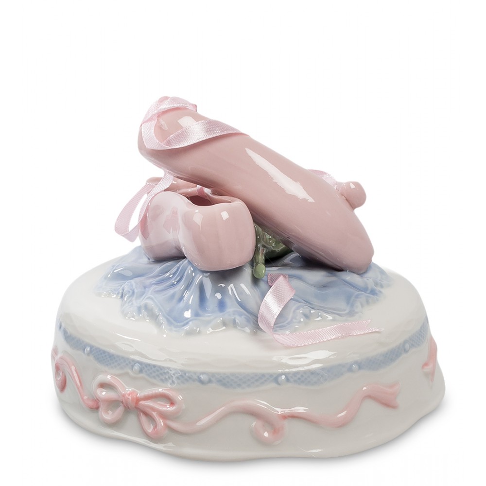 Две маленькие розовые туфельки-балетки, переплетенные розовыми ленточками и усыпанные такого же цвета розами на круглой подставке, чем-то напоминающей торт. Можно рассматривать эту композицию, как напоминание о недавнем прошлом, когда хозяйка этих туфелек жила балетом, в прекрасных танцах выражала свое отношение к миру. Но это – не просто фигурка, а музыкальная шкатулка. И, включив ее, можно заставить звучать музыку из балетных сюит, которые когда-то были исполнены балериной в этих туфельках. А это уже не просто воспоминание – это жизнь, в которой всегда останется место для искусства.