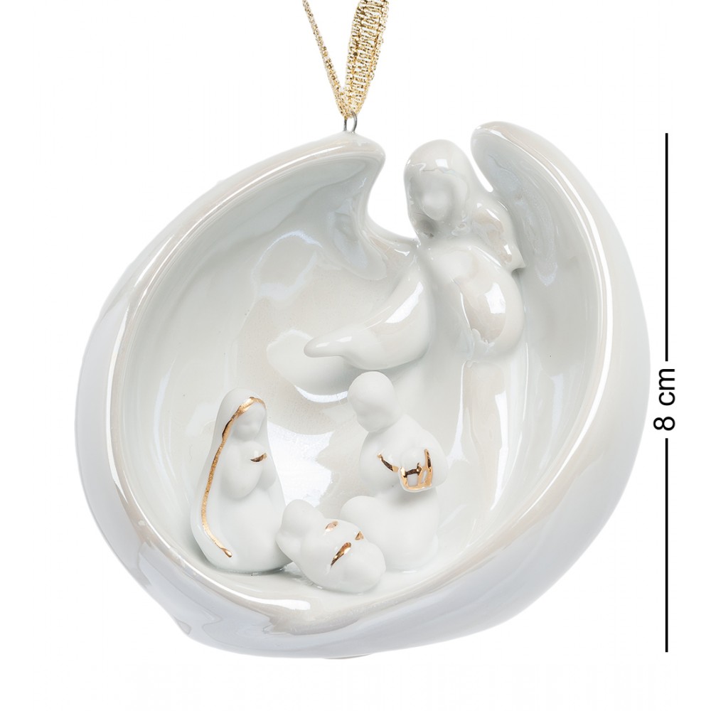 Подвеска "Ангел-хранитель очага" (Павоне); Подвеска « Ангел-хранитель очага » олицетворяет собой библейскую чистоту и покорность. Поразительно красивая композиция сделана в виде ангела, который укрыл собственными крыльями молящихся детей, таким образом защищая и оберегая их. Подвеска сделана из белого фарфора, покрытого напылением из перламутра и золотистым декорированием, что ее делает еще более возвышенной и нежной.