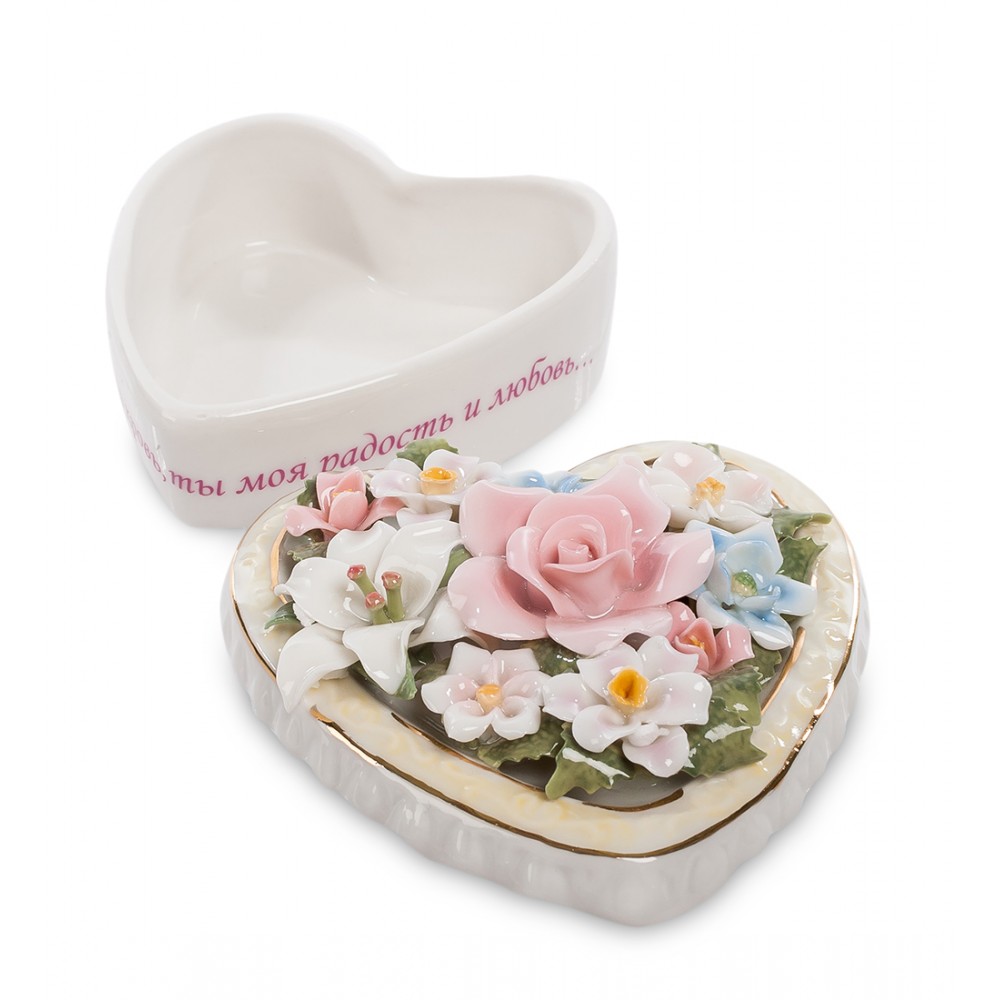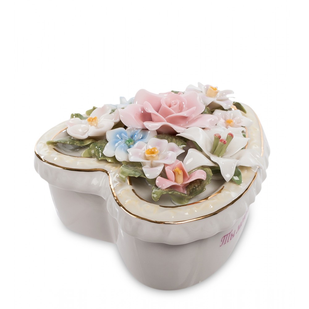 Превосходный подарок любимой женщине – аккуратная шкатулка, крышка которой буквально усыпана цветами, почти как живыми. О любви и сама форма шкатулки говорит в виде сердечка. А что хранить внутри, подарившего каждый раз вспоминая, это уже возлюбленной самой решать. Но явно это будут ценные вещи, украшения, памятные и дорогие. И каждый раз, доставая их, будет она про вас вспоминать, и не просто так, а с любовью. Такая вот волшебная шкатулочка.
