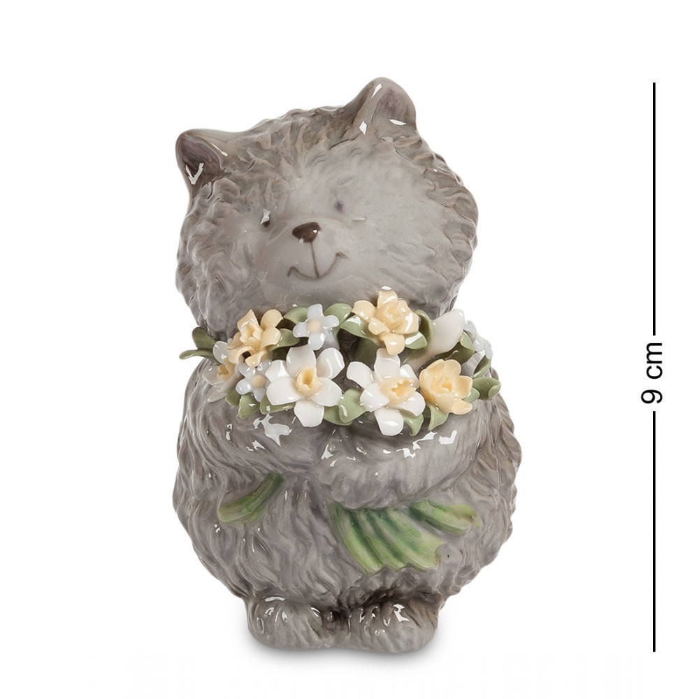 В период, когда будущие семейные отношения только-только начинают налаживаться, бывает так, что парень своей девушке даже букет цветов вручить стесняется. Потом это стеснение пройдет, а сейчас-то что делать? Вот и нужен для этого посредник, например, такой милый котик. Вот он стоит на задних лапках, а в передних держит целую охапку цветов, нежные фарфоровые лепестки которых так похожи на живые. Держит и слегка улыбается, передавая привет от того, кто его вручил. И будет этот котик с букетом стоять на полке много лет, напоминая о первых свиданиях и первых знаках внимания. А цветы у него всегда будут свежими, ослепительно белыми и красивыми.