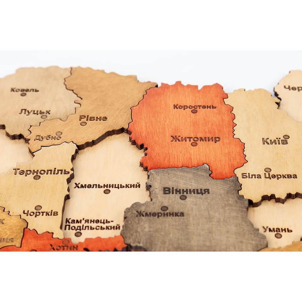 Дерев’яна 3D настінна карта України – це класний, патріотичний, декоративний елемент, який може стати родзинкою будь-якого інтер’єру: чи то будинок, чи сучасний офіс.