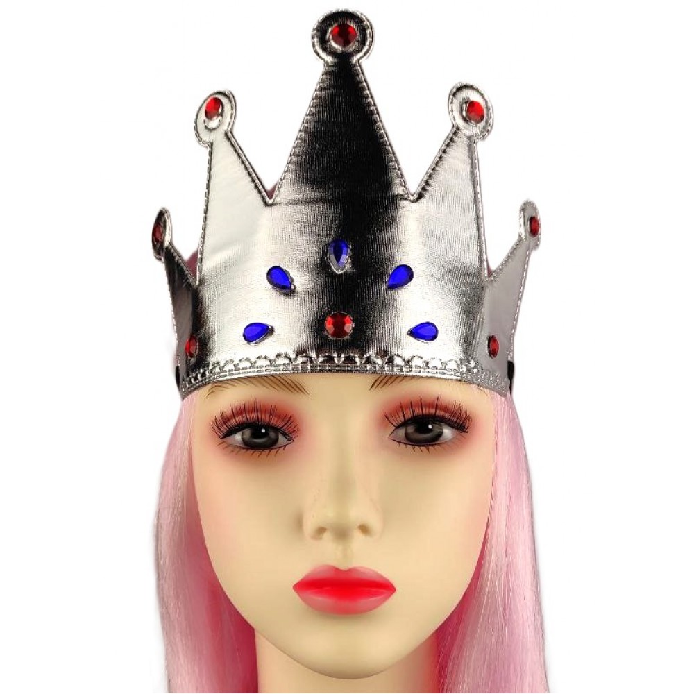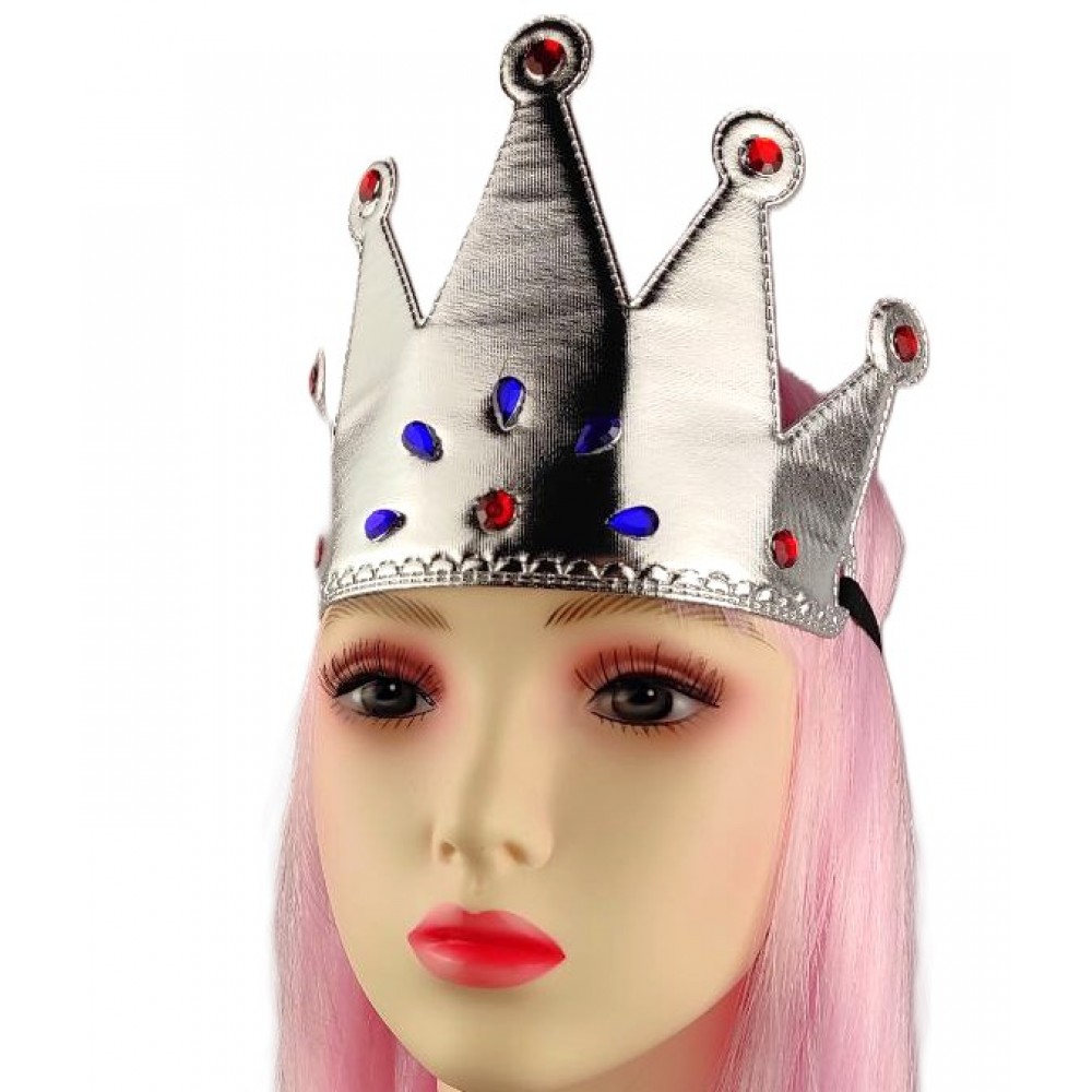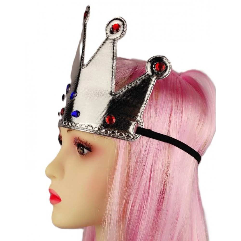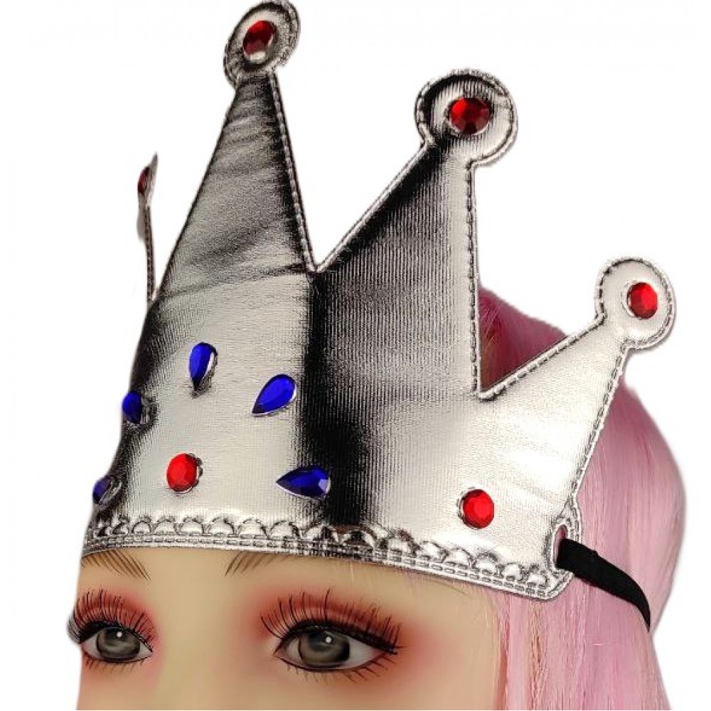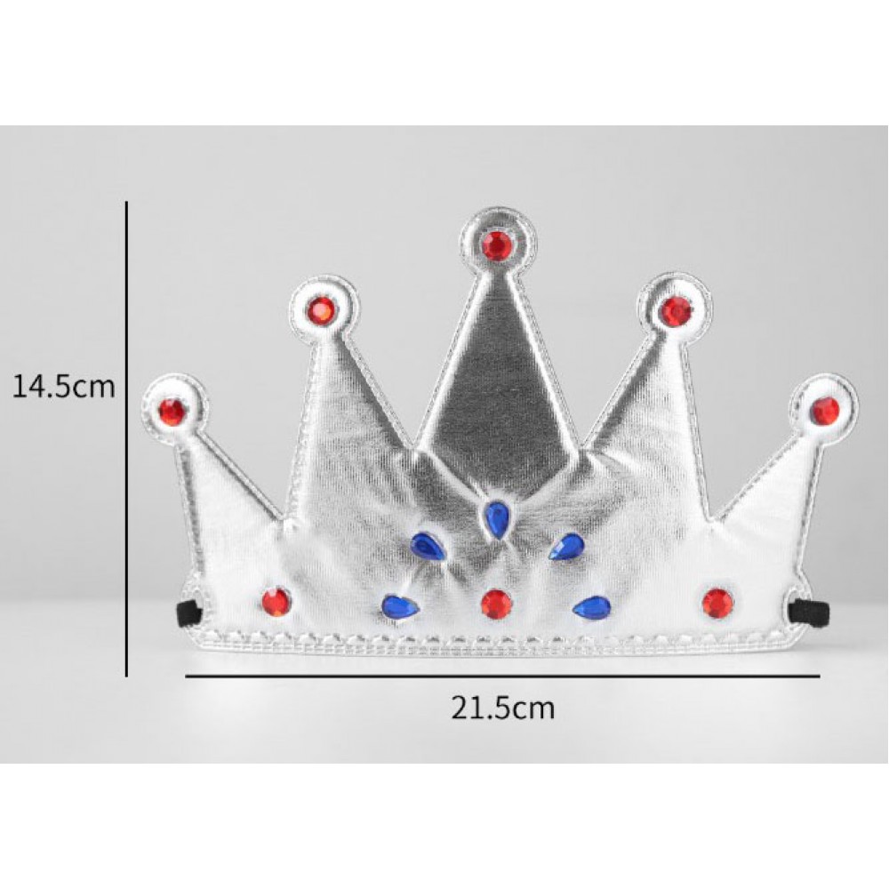 Модель оформлена в класичній формі корони з п’ятьма вигнутими вершинами, прикрашеними 13 каменями червоного та синього кольору. Центральний елемент підноситься, немов символ лідерства, а м’який блиск тканини надає образу урочистості. Завдяки своїй легкій вазі (всього 7 грамів) та м’якій текстурі, корона ідеально сидить на голові і не викликає дискомфорту навіть при тривалому носінні. Еластична резинка акуратно фіксує її, не пережимаючи, що робить її підходящою як для малюків, так і для школярок. Це універсальне прикраса для свят, театральних виступів, косплею або просто чарівної гри вдома.