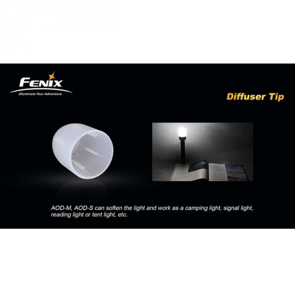 Новинка від компанії Fenix – дифузійний фільтр-насадка AOD-S. Дифузійний фільтр-насадка AOD-S розроблений перетворювач потужного вузькоспрямованого променя ліхтаря в розсіяне світло, який забезпечує рівномірне освітлення простору. Як варіант, дану модель можна використовувати в якості сигнального пристрою для подачі світлових сигналів.