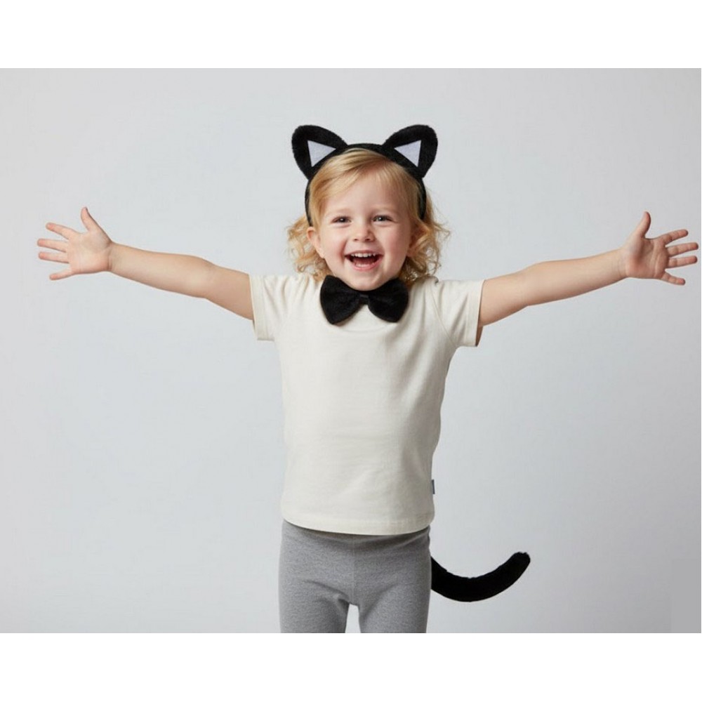 Карнавальний набір «Чорний кіт» призначений для створення класичного образу кошеняти на дитячі свята та виступи. У комплект входять обруч на голову з вушками, декоративний бантик і хвіст. Усі елементи виконані в чорному кольорі, що робить образ універсальним і легко поєднуваним з костюмами та одягом.