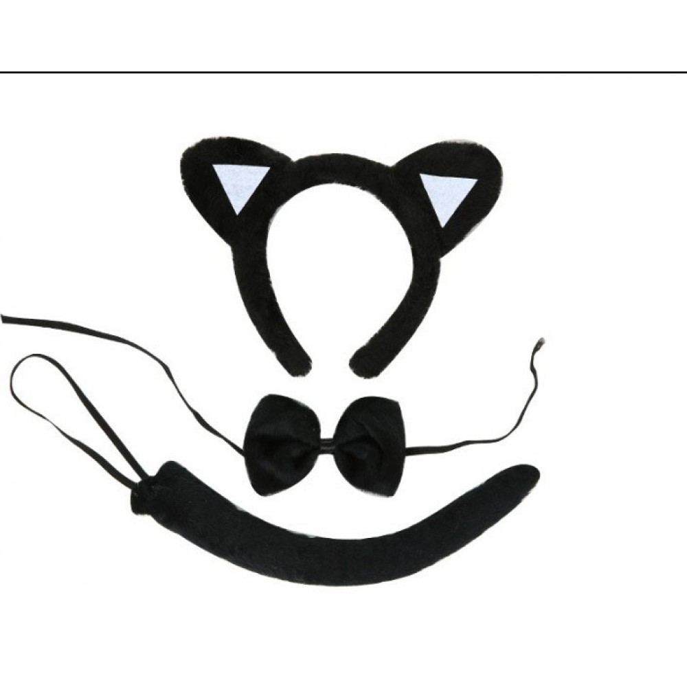 Дитячий карнавальний набір «Чорний кіт»: обруч з вушками, бантик і хвіст, 3 предмети