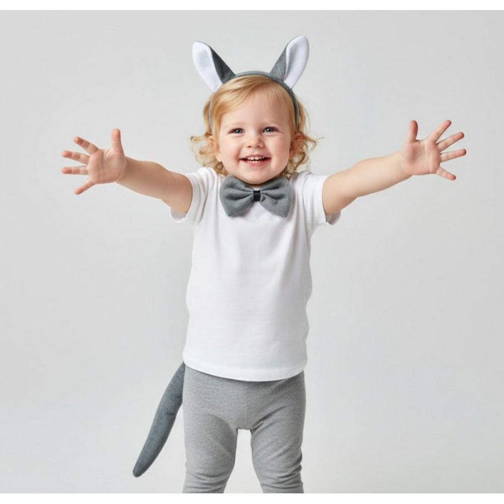 Карнавальний набір «Сірий вовк» підходить для дитячих свят і виступів, коли потрібен впізнаваний образ тварини. У комплект входять обруч на голову з вушками, декоративний бантик і хвіст. Усі елементи виконані в сірому кольорі, на вушках є світла внутрішня частина — це добре видно на фото. Такий комплект допомагає швидко зібрати цілісний костюм без складного одягу.