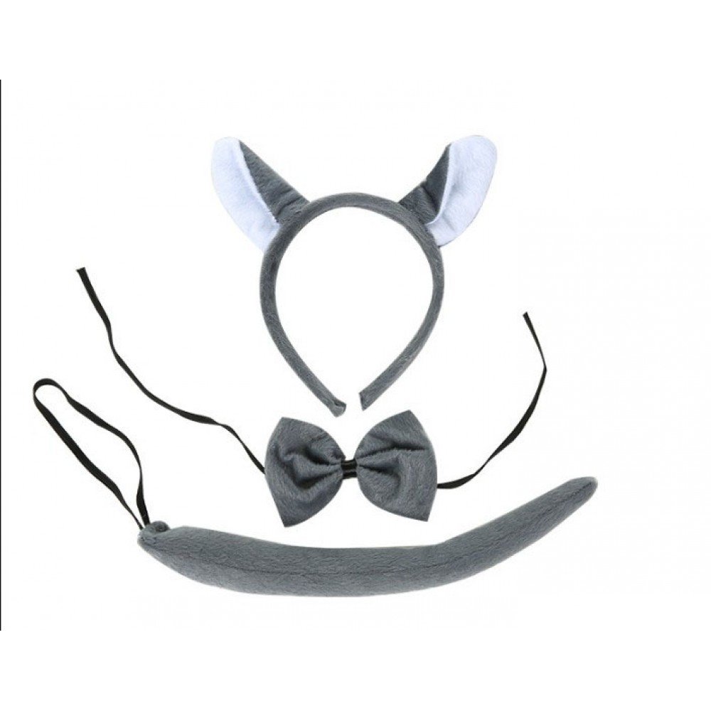 Дитячий карнавальний набір «Сірий вовк»: обруч з вушками, бантик і хвіст, 3 предмети