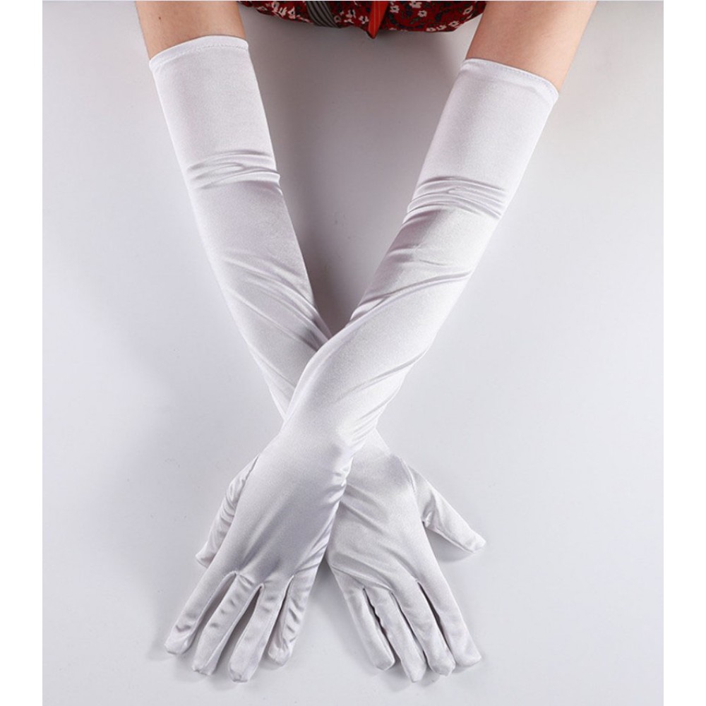 Білі довгі рукавички - класика, яка відразу робить образ більш нарядним і акуратним. М'який атлас красиво блищить, не «ріже» шкіру і приємно тягнеться, тому рукавички зручно надягати і носити весь вечір. Довжина близько 52 см прикриває руку вище ліктя: у такому варіанті рукавички ідеально виглядають з відкритою сукнею, корсетом або елегантним комбінезоном. Білий колір особливо подобається нареченим і любителям ретро-стилю: їх беруть на весілля, випускний, постановки, фотосесії в стилі Гетсбі та на будь-які костюмовані вечірки, де потрібен акуратний, але ефектний акцент.