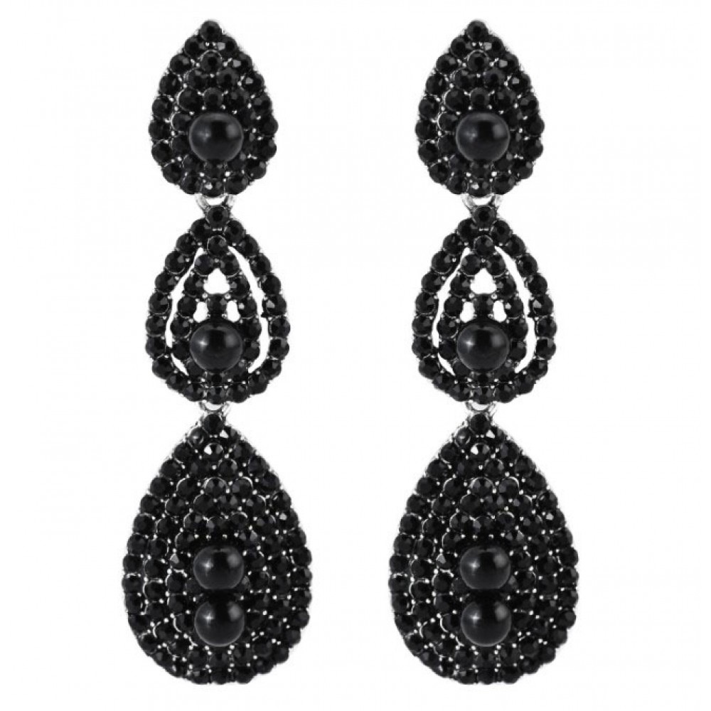 Довгі чорні сережки-краплі з камінням для гангстерської вечірки