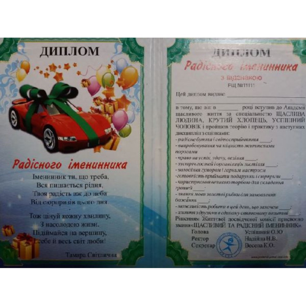 Диплом зроблений із щільного картону обтягнутий ламінованою картинкою.